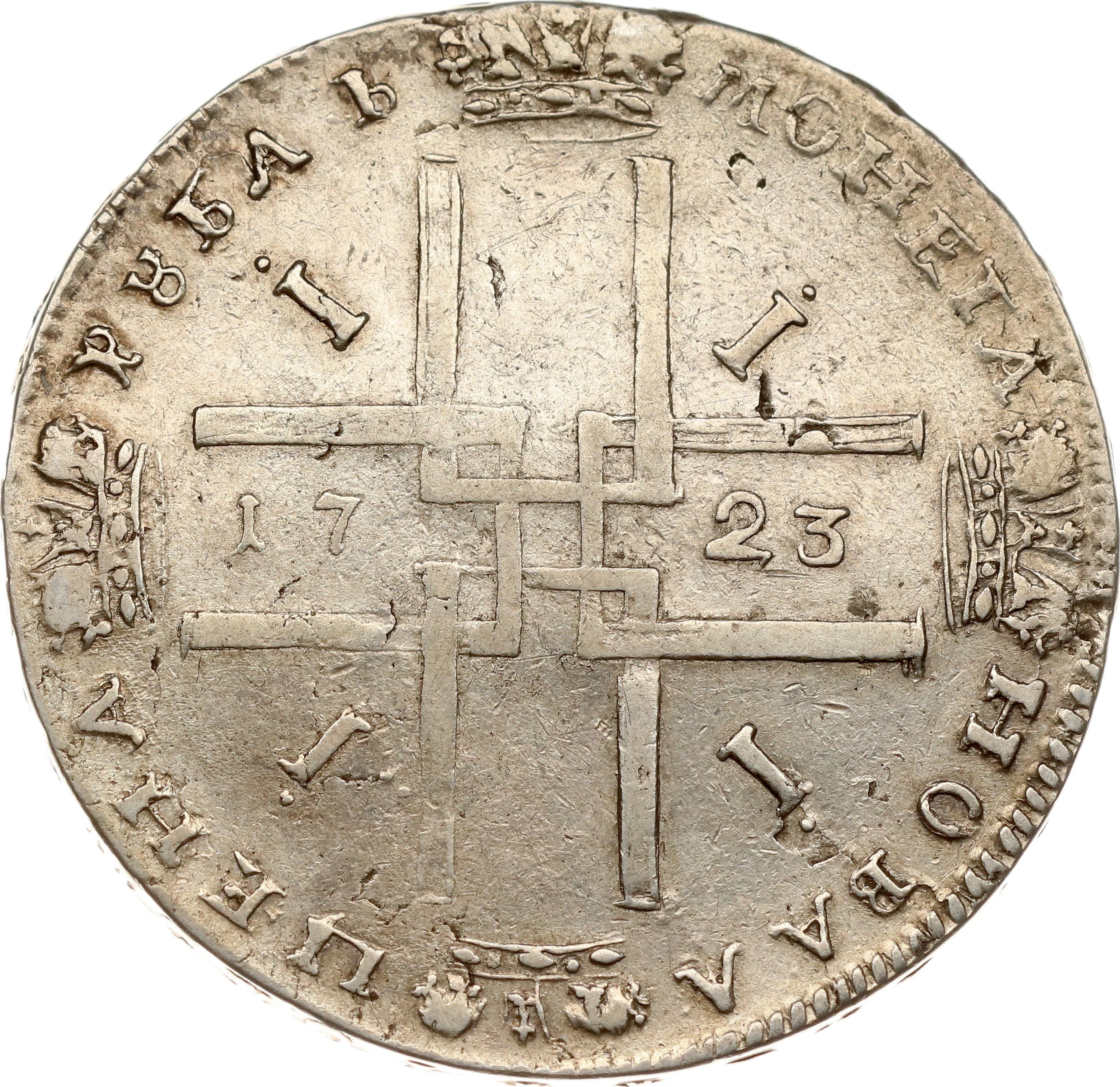 Russia. Peter I (1699-1725). Rouble 1723, Moscow. 'Portrait in ancient armour'. Silver 28.56 g. Bitkin 892.