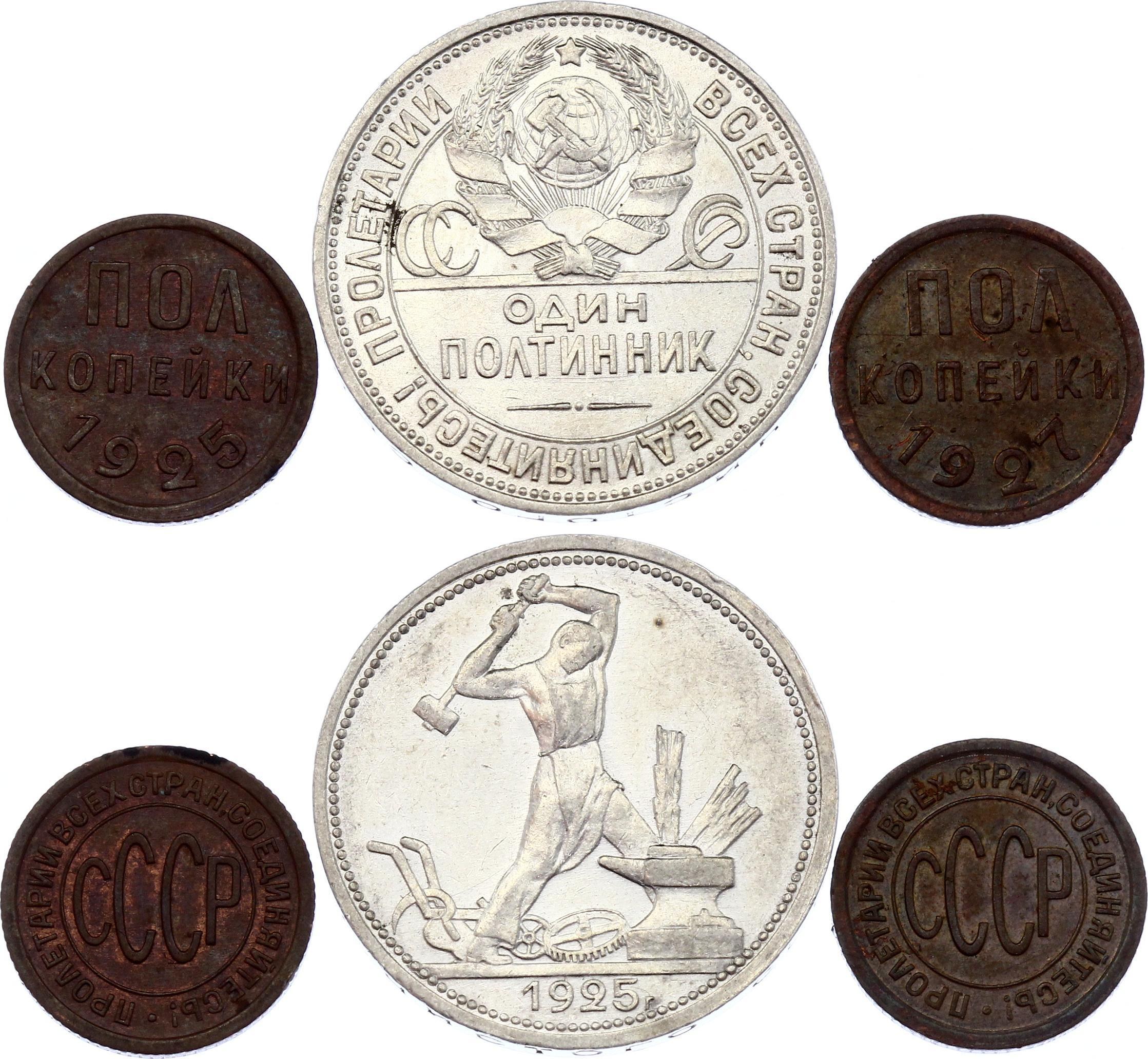 1/2 Kopeks 1925,1927 & Poltinnik 1925; With Silver