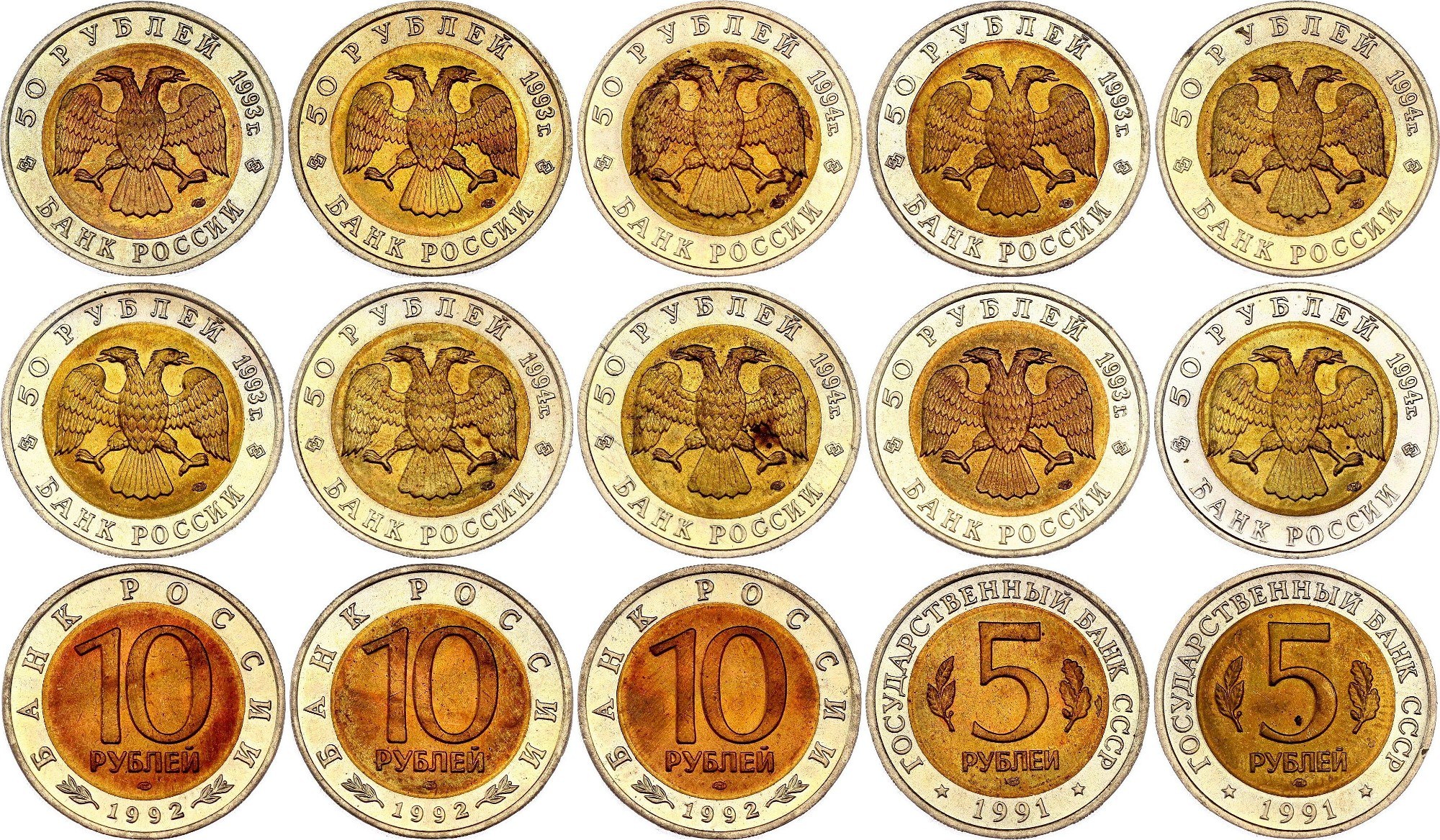 Russia - USSR & Russian Federation Lot of 15 Coins "Red Book Series" 1991 - 1994