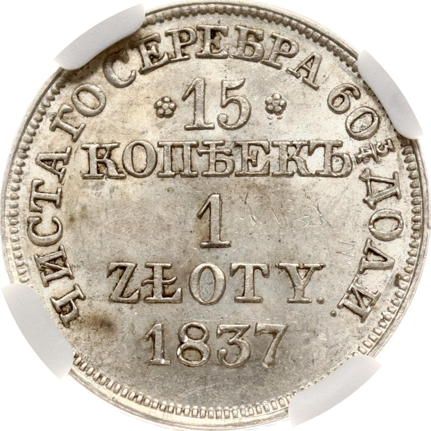 Russian-Polish 15 Kopecks - 1 Zloty 1837 MW NGC MS 63