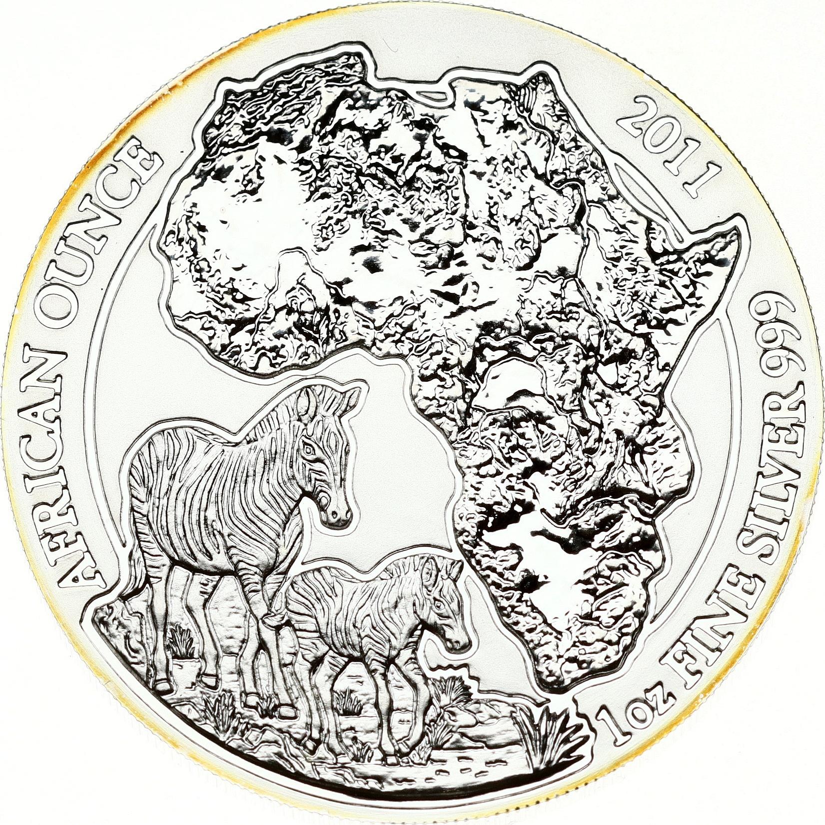 Rwanda 50 Amafaranga 2011 Zebra. Silver .999, 31.1 g. KM-39. With packaging