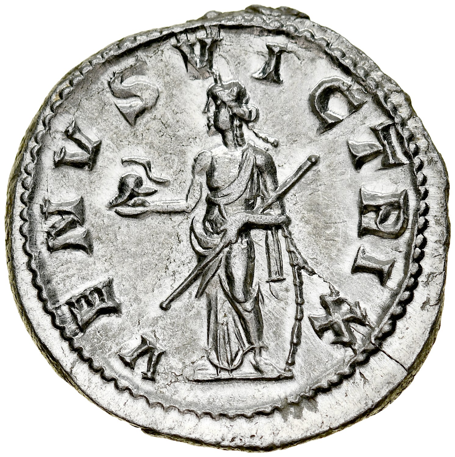 Av.: Popiersie cesarza w wieńcu laurowym, Rv.: Stojąca Venus trzyma hełm i berło, napis: VENVS VICTRIX, RSC 347, RIC 131, piękny, świeży połysk menniczy.