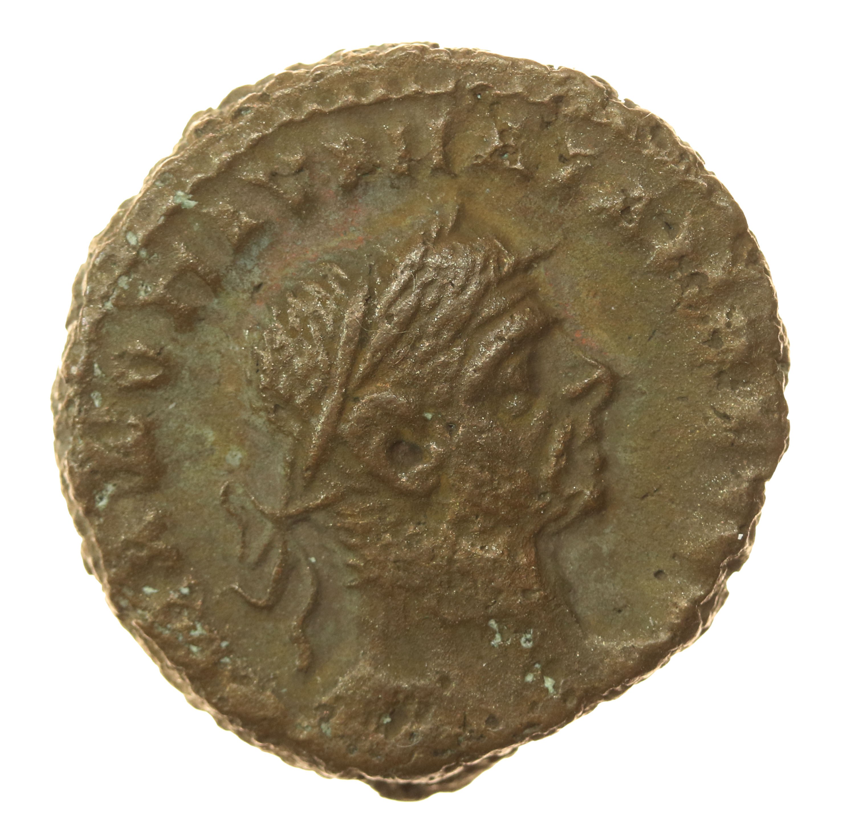 Awers: popiersie w wieńcu laurowym i zbroi w prawo