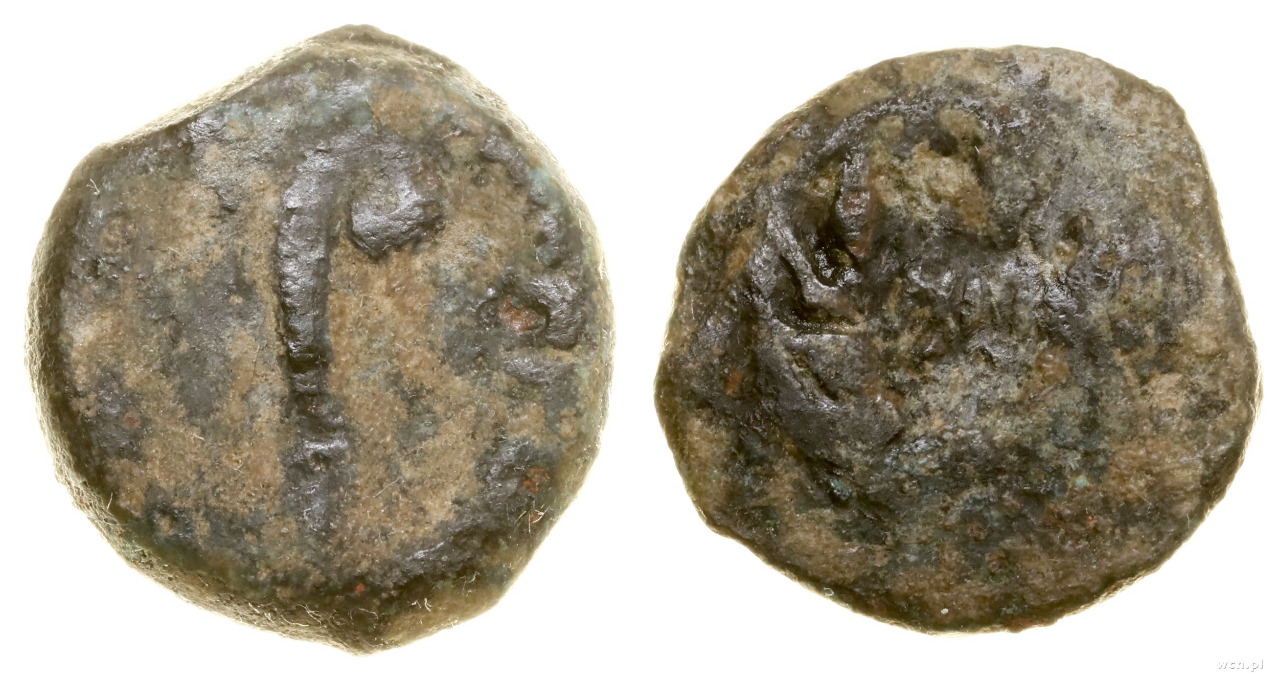 Aw: Lituus (laska kapłańska), [ΤΙΒΕΡΙΟΥ ΚΑΙCAΡOC]; Rw: Wieniec, w którym data