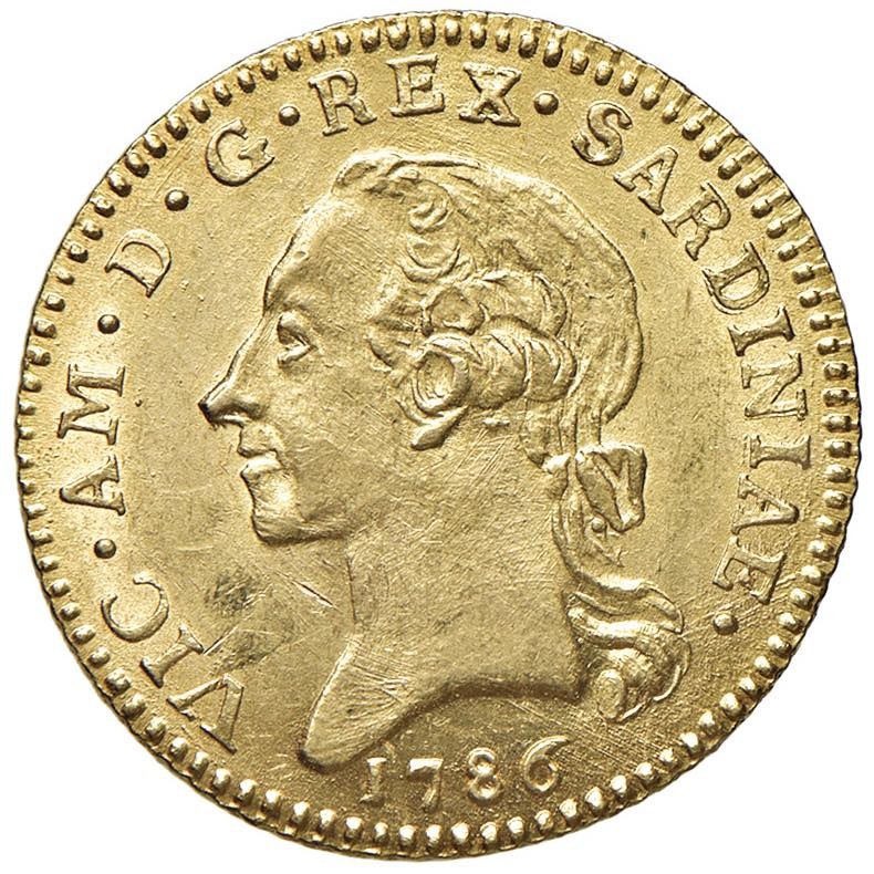 Vittorio Amedeo III (1773-1796) Doppia 1786 - Nomisma 287; MIR 982a AU (g 9,10) Lievi contatti al D/, ma esemplare di ottima qualità