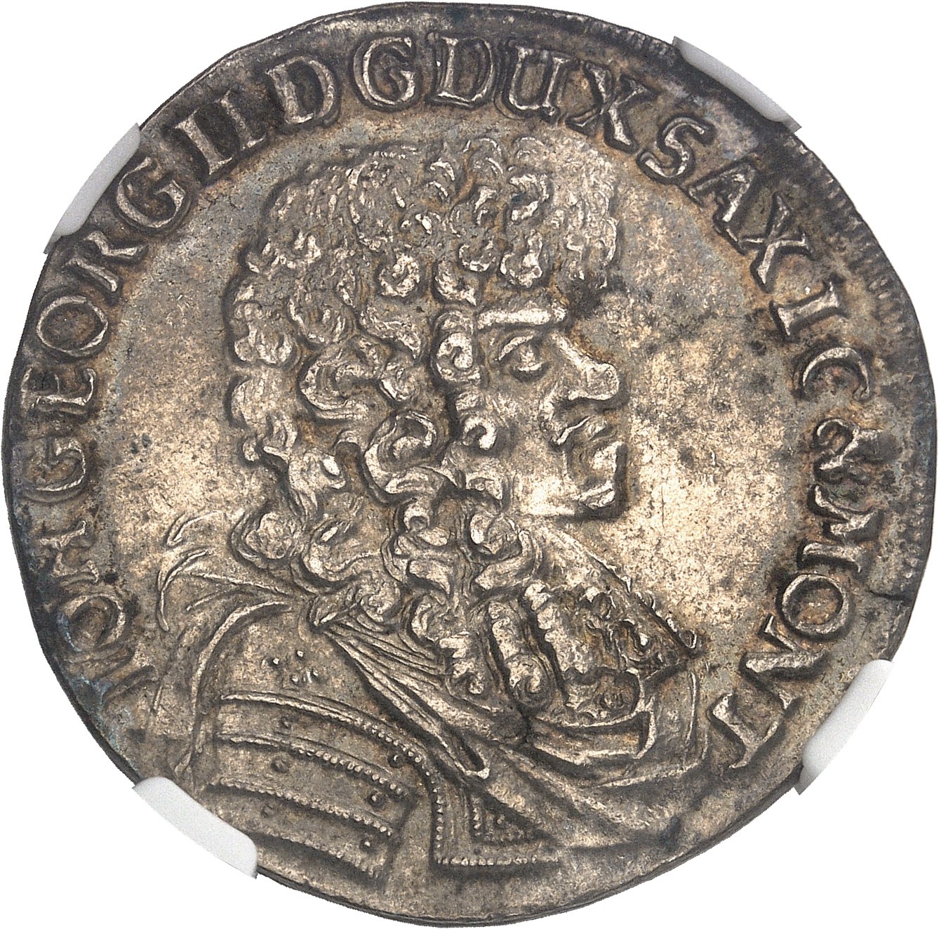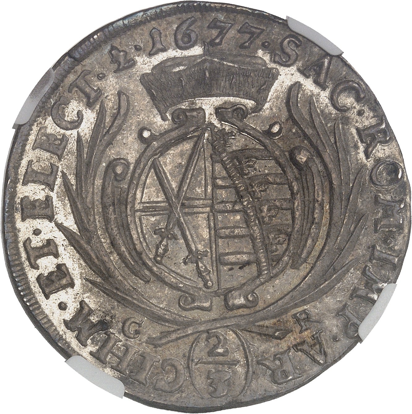 Saxe, Jean-Georges II (1656-1680). 2/3 de thaler 1677 CR, Dresde. NGC MS 63 (6630881-002).