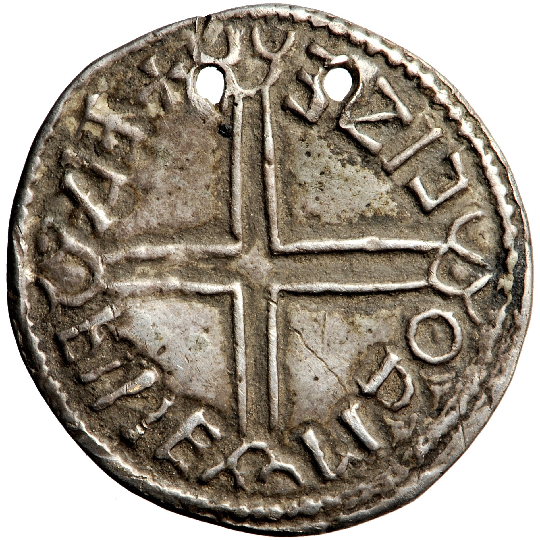 Grade VF+. Twice pierced and smoothed for hanging in the epoch.