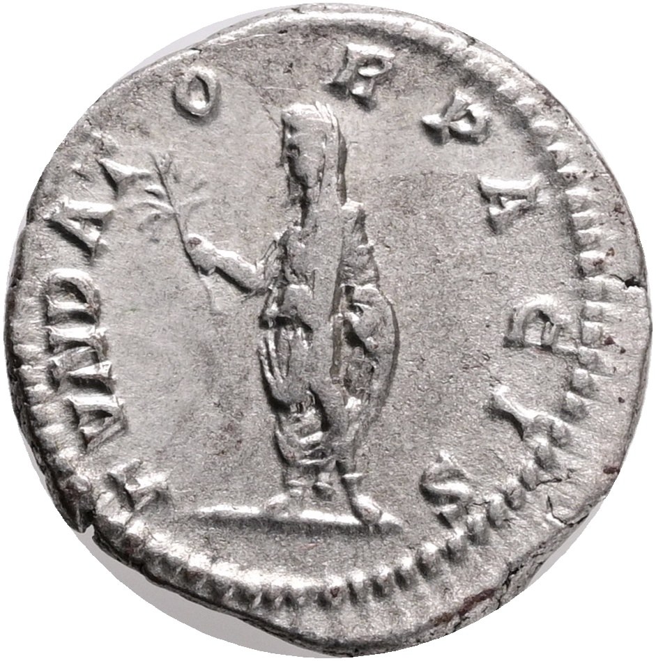 Septimius Severus AR Denarius. Rome,Obv.: SEVERVS PIVS AVG, laureate head to right . Rev.: FVNDATOR PACIS, Emperor, veiled and togate, standing to left, holding branch and roll. Ref.: RIC IV 265; BMCRE 330; RSC 205. AR. 3,4g.
