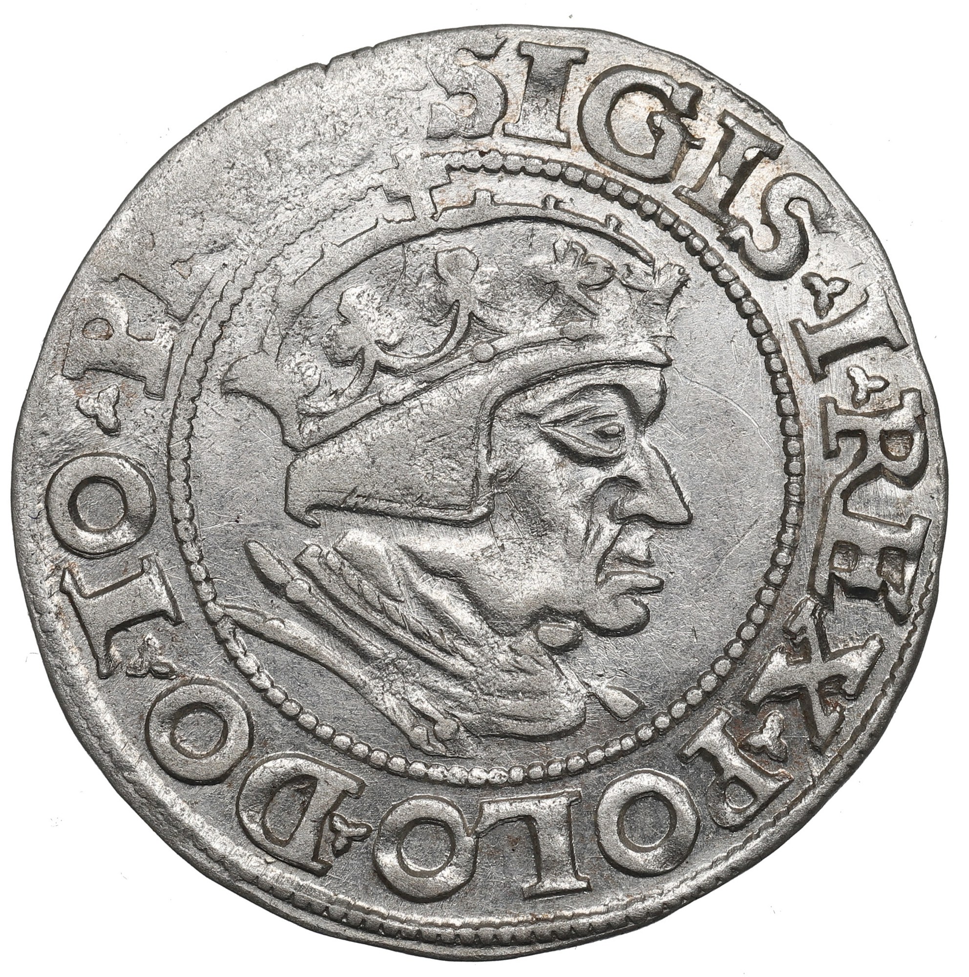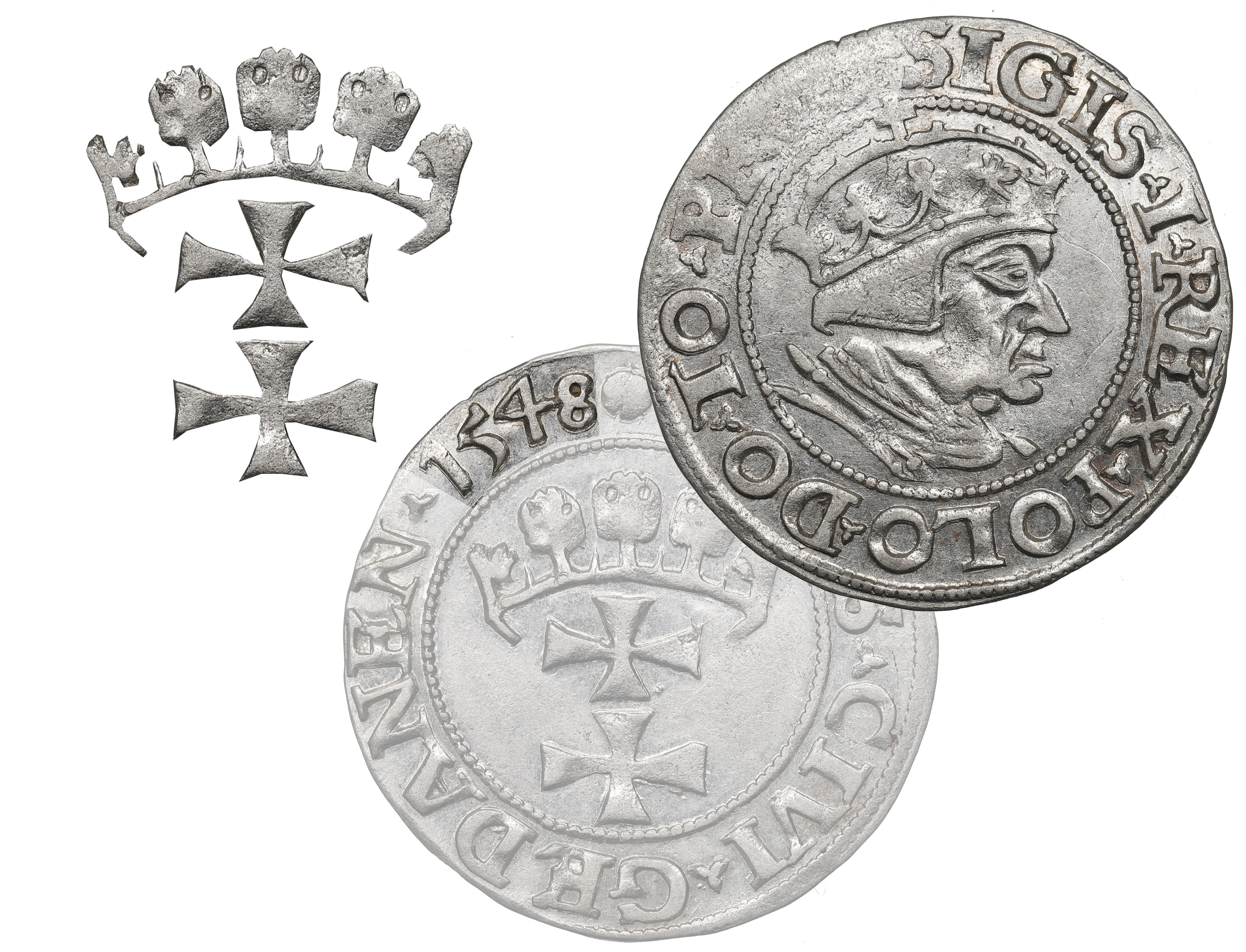 Najrzadszy, ostatni, rocznik groszy gdańskich Zygmunta Starego.