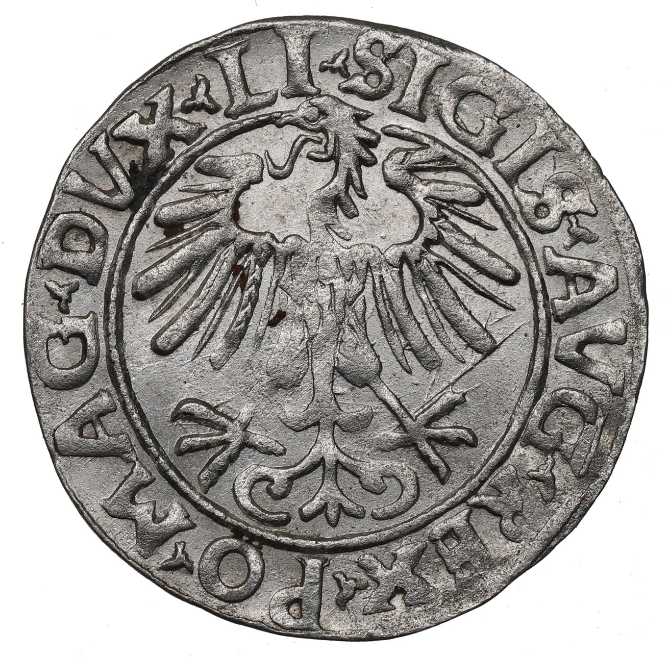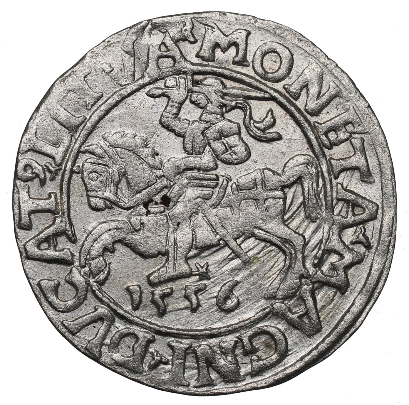 Rewers: w otoku sznurowym Pogoń w lewo, pod nią data 1556, w otoku zewnętrznym legenda przedzielona trójlistkami: