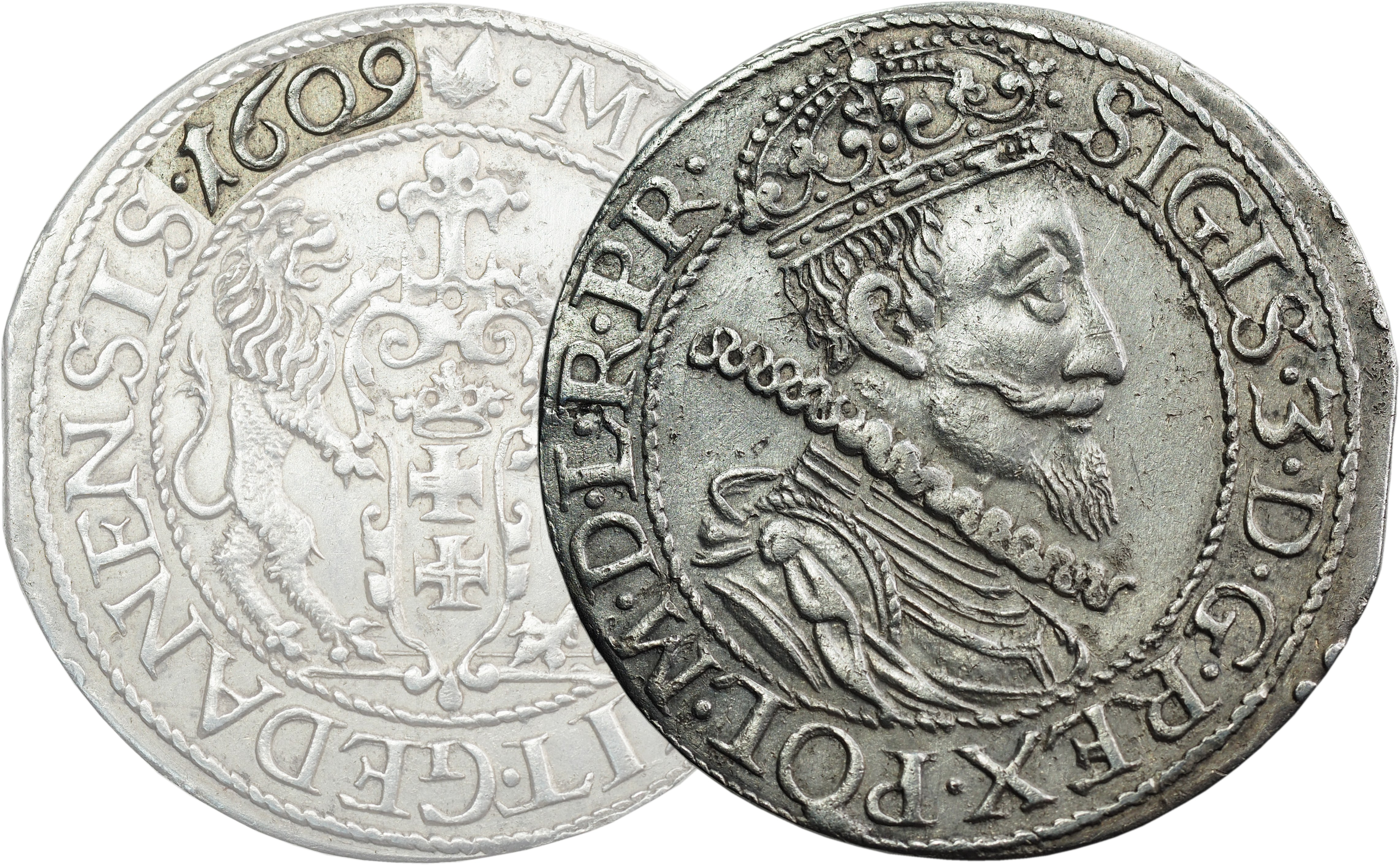 Bardzo rzadki, wczesny rocznik orta gdańskiego.