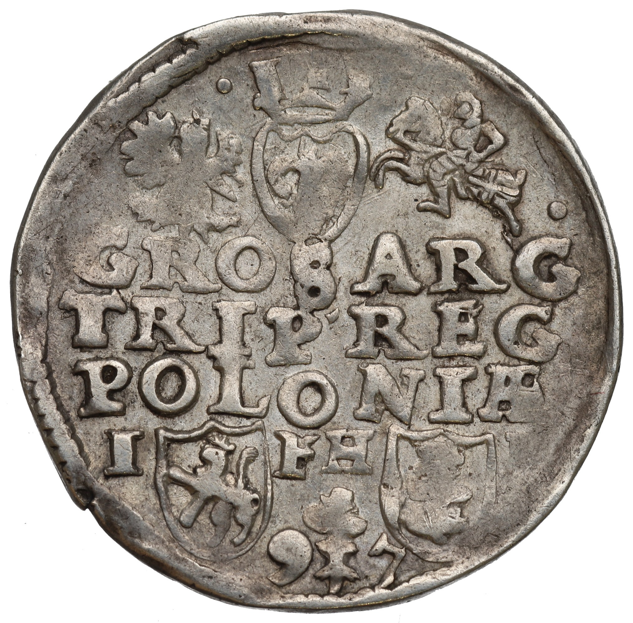 Odmiana z tytulaturą króla SIG III oraz skróconą datą rozdzieloną gałązką - znakiem dzierżawcy Jana Ditmara.