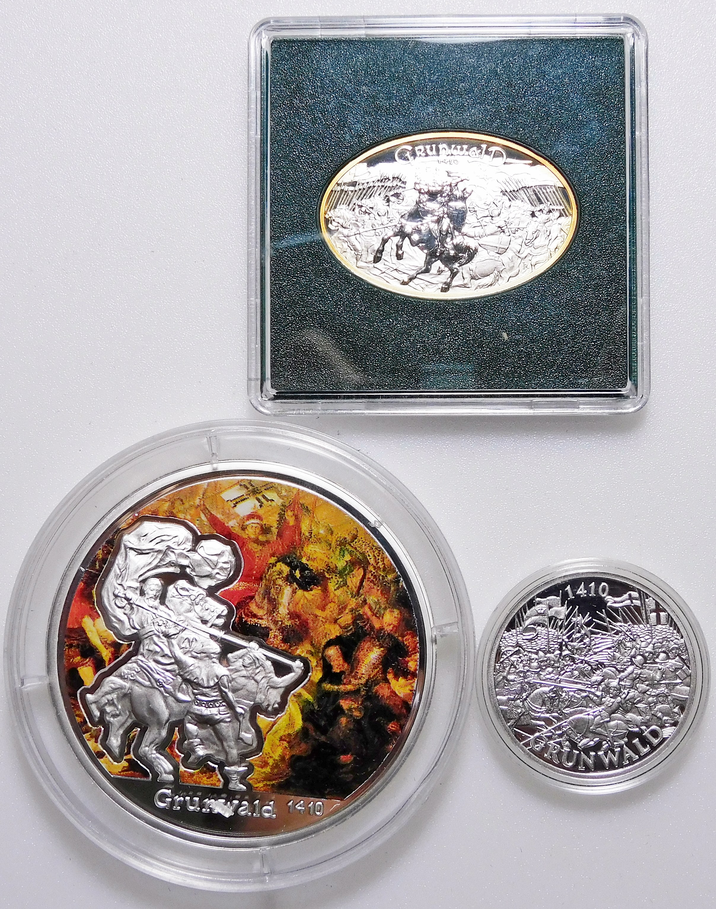 1. Numizmat Bitwa pod Grunwaldem z tampondrukiem, waga: 93,3 g Ag 925