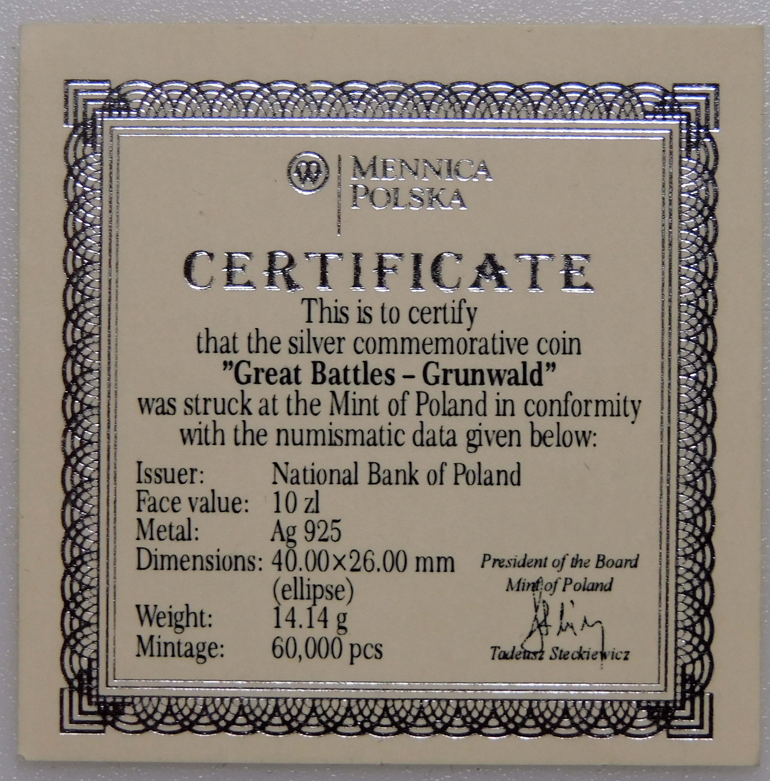 2. Numizmat Bitwa pod Grunwaldem, waga: 14,14 Ag 925