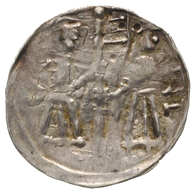 POLSKA, Śląsk - Bolesław Wysoki 1163-1201, denar, Wrocław, Aw: Krzyż dwunitkowy i napis BOLI, Rw: Dwie postacie z chorągwią, srebro 0.21 g, Stronczyński 174 c, Suchodolski typ 3c