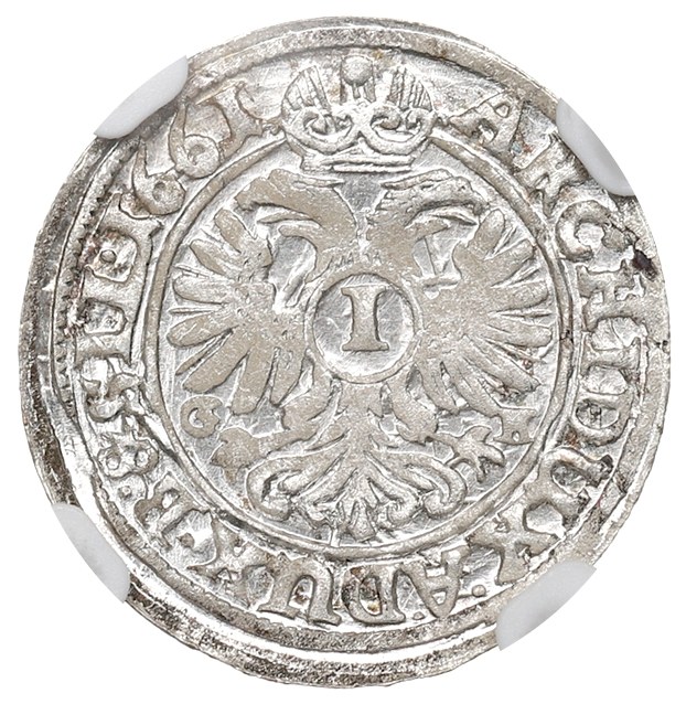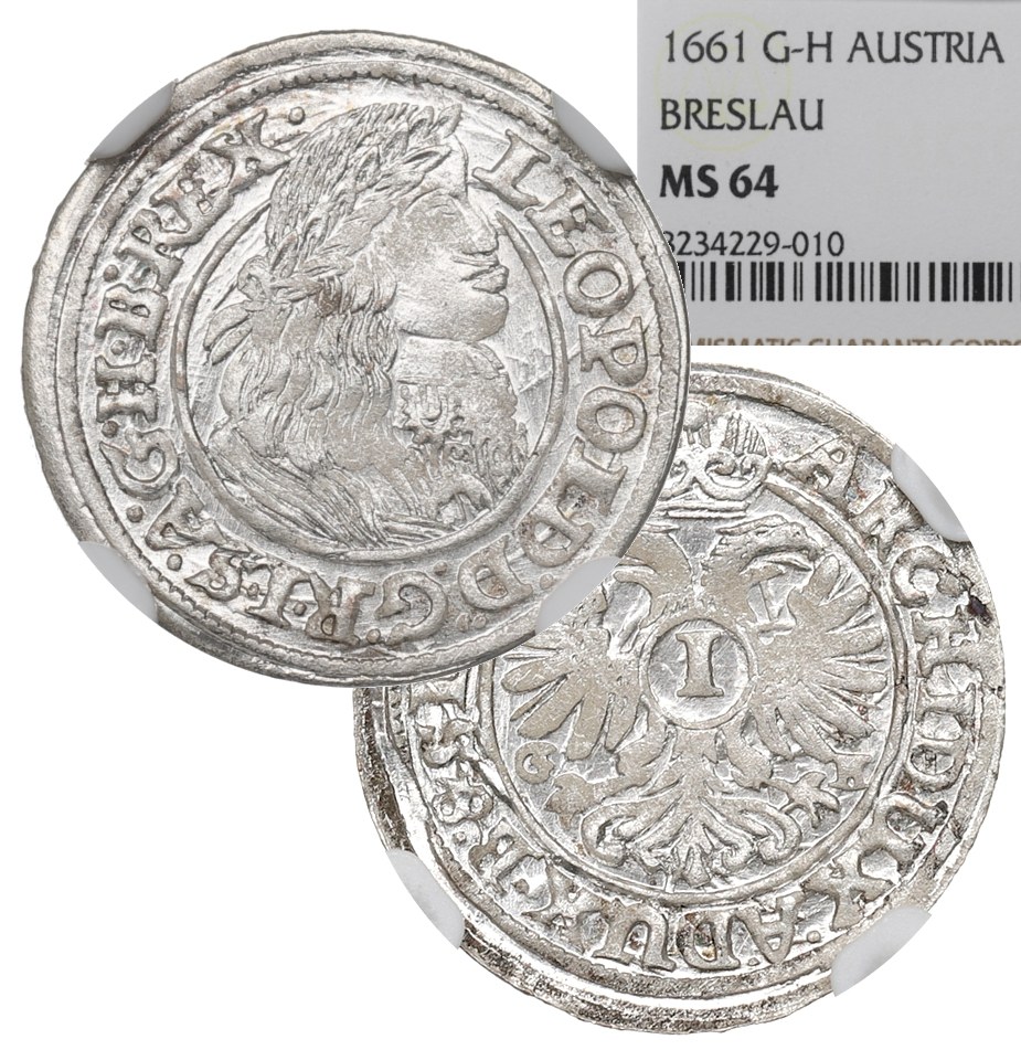 Rewers: orzeł cesarski z cyfrą nominału na piersi, po jego bokach inicjały wardajna wrocławskiego, w otoku zewnętrznym legenda: