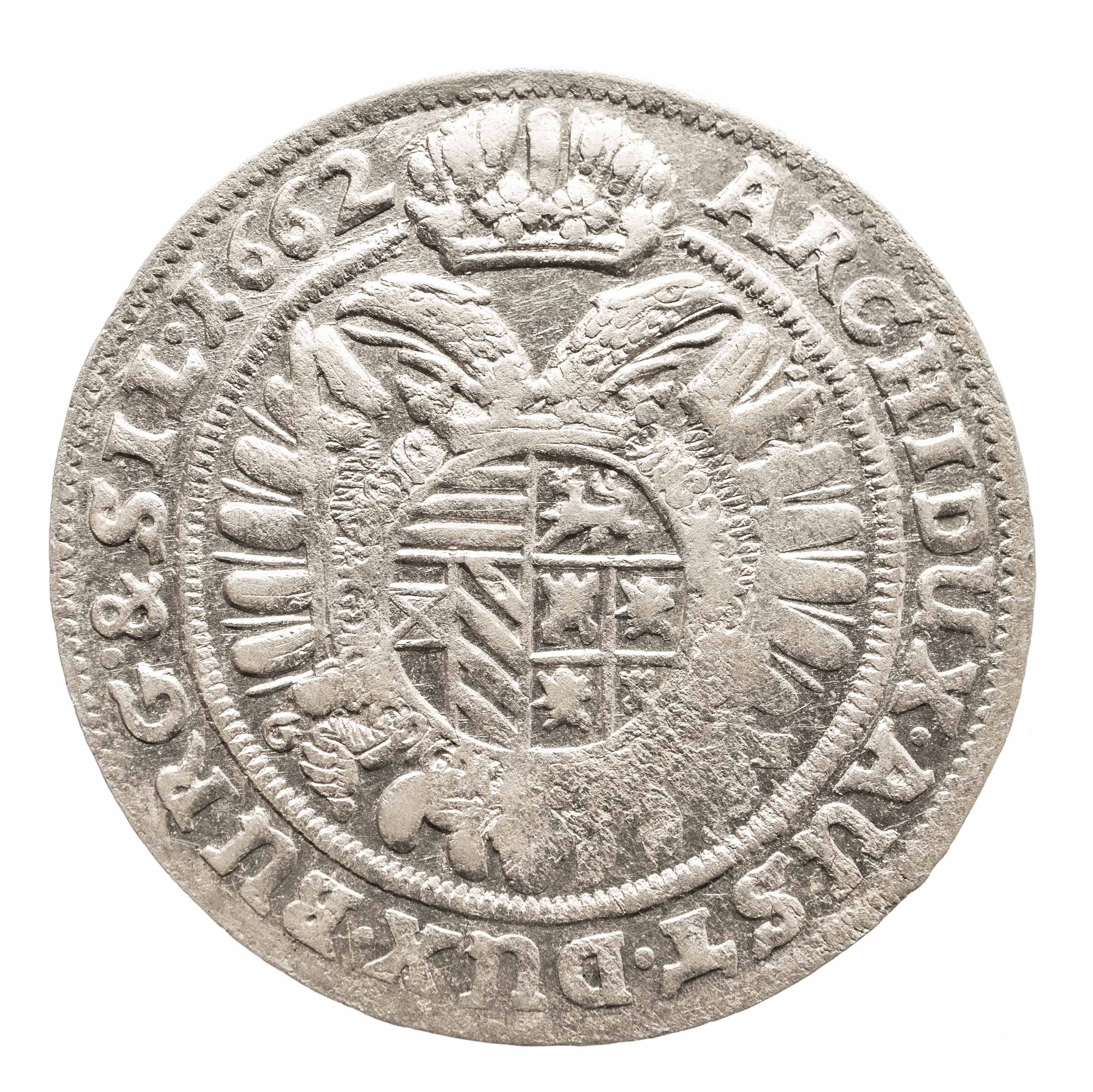 Odmiana z tarczą herbową na piersi orła owalną, napis otokowy na awersie: "LEOPOLDUS.D:G.R.I:"...