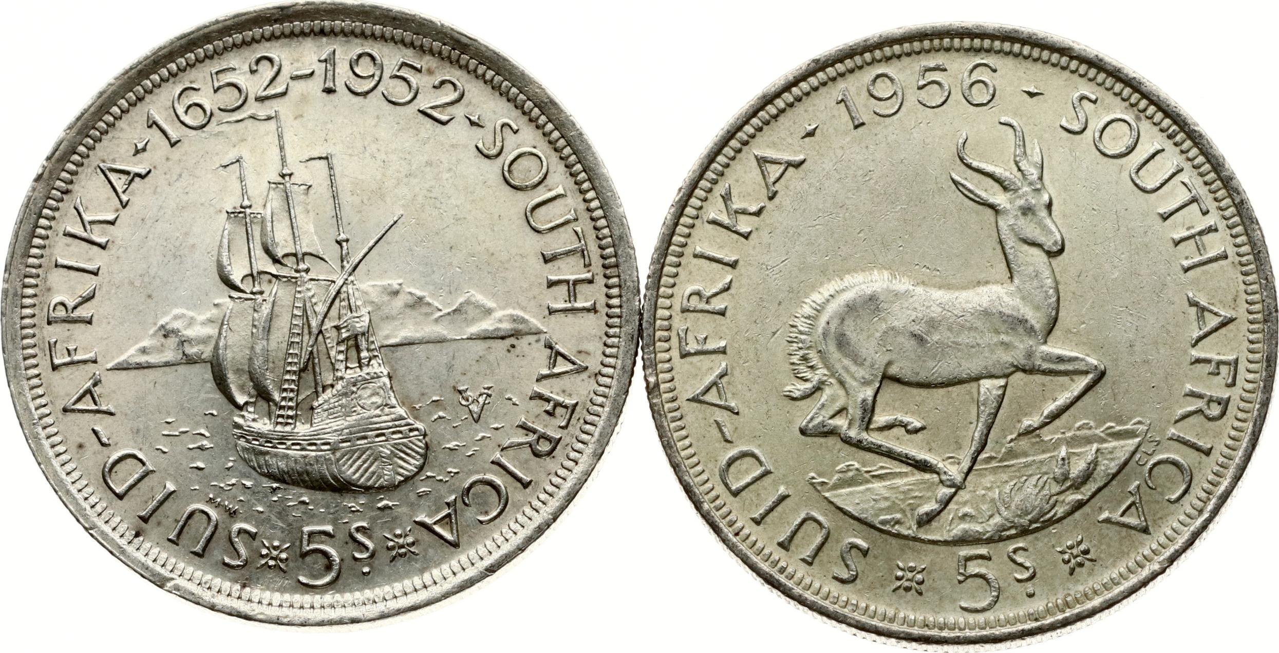 South Africa 5 Shillings 1952 & 1956 Lot of 2 coins