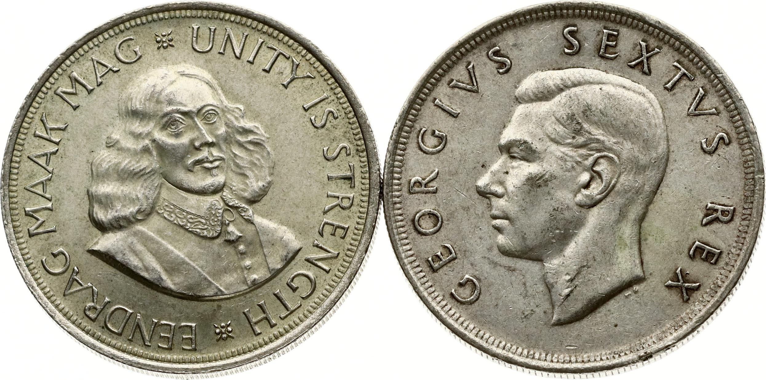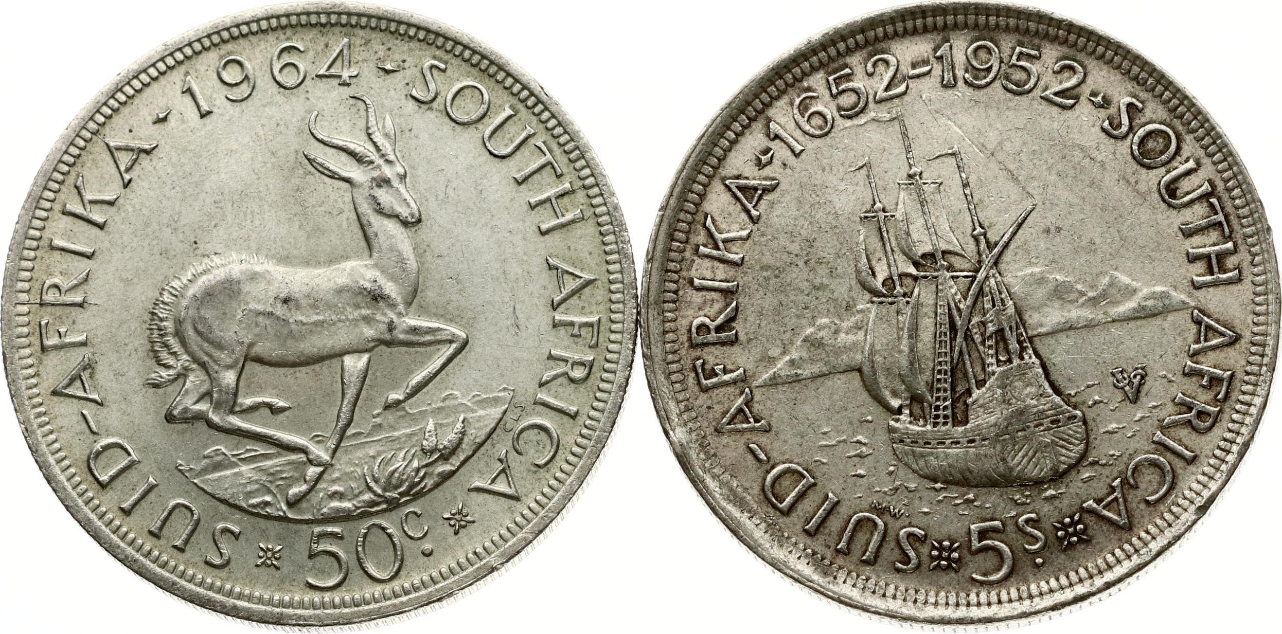 South Africa 5 Shillings 1952 & 50 Cents 1964 Lot of 2 coins