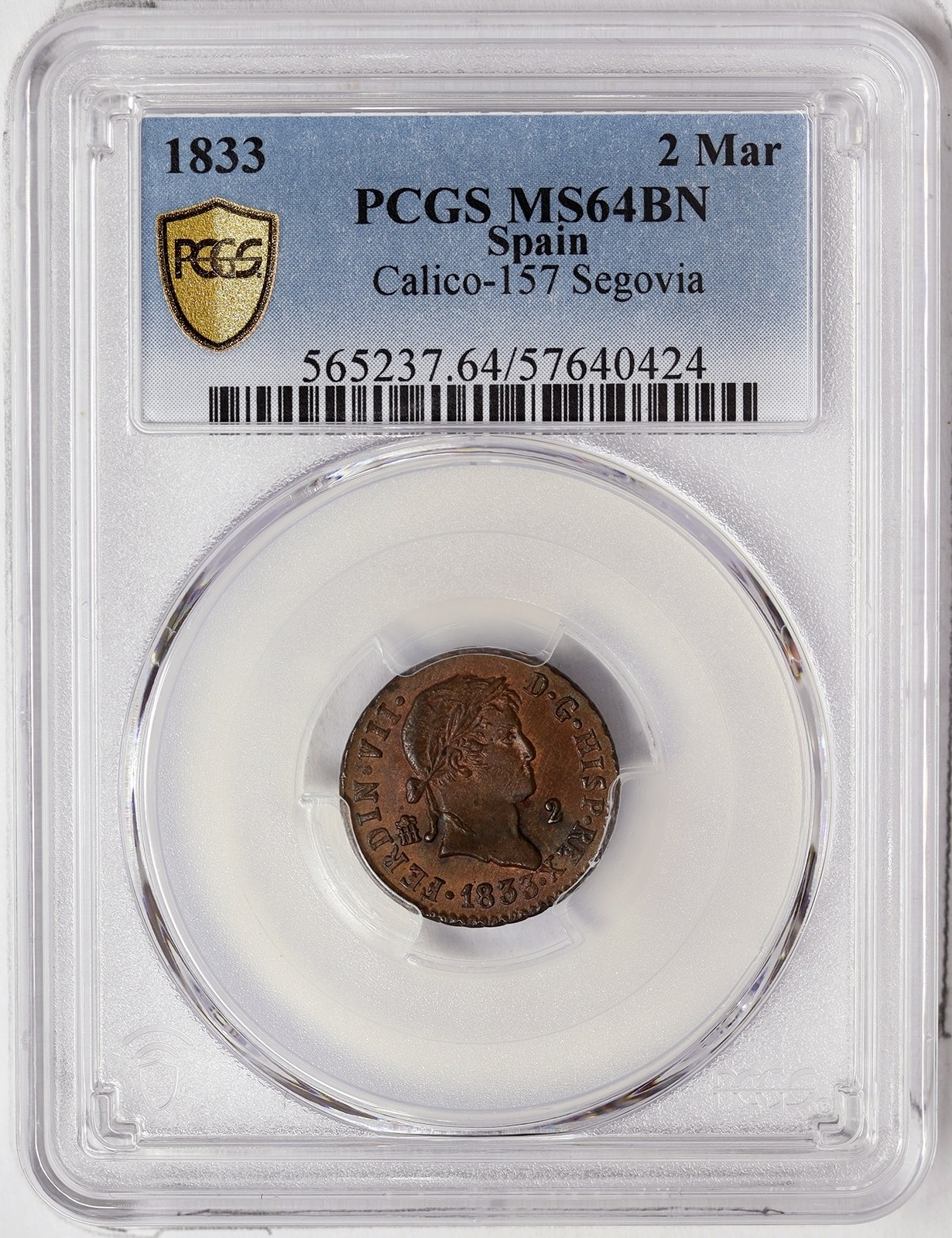 Spain, Ferdinand VII, 2 Maravedís 1833, Segovia