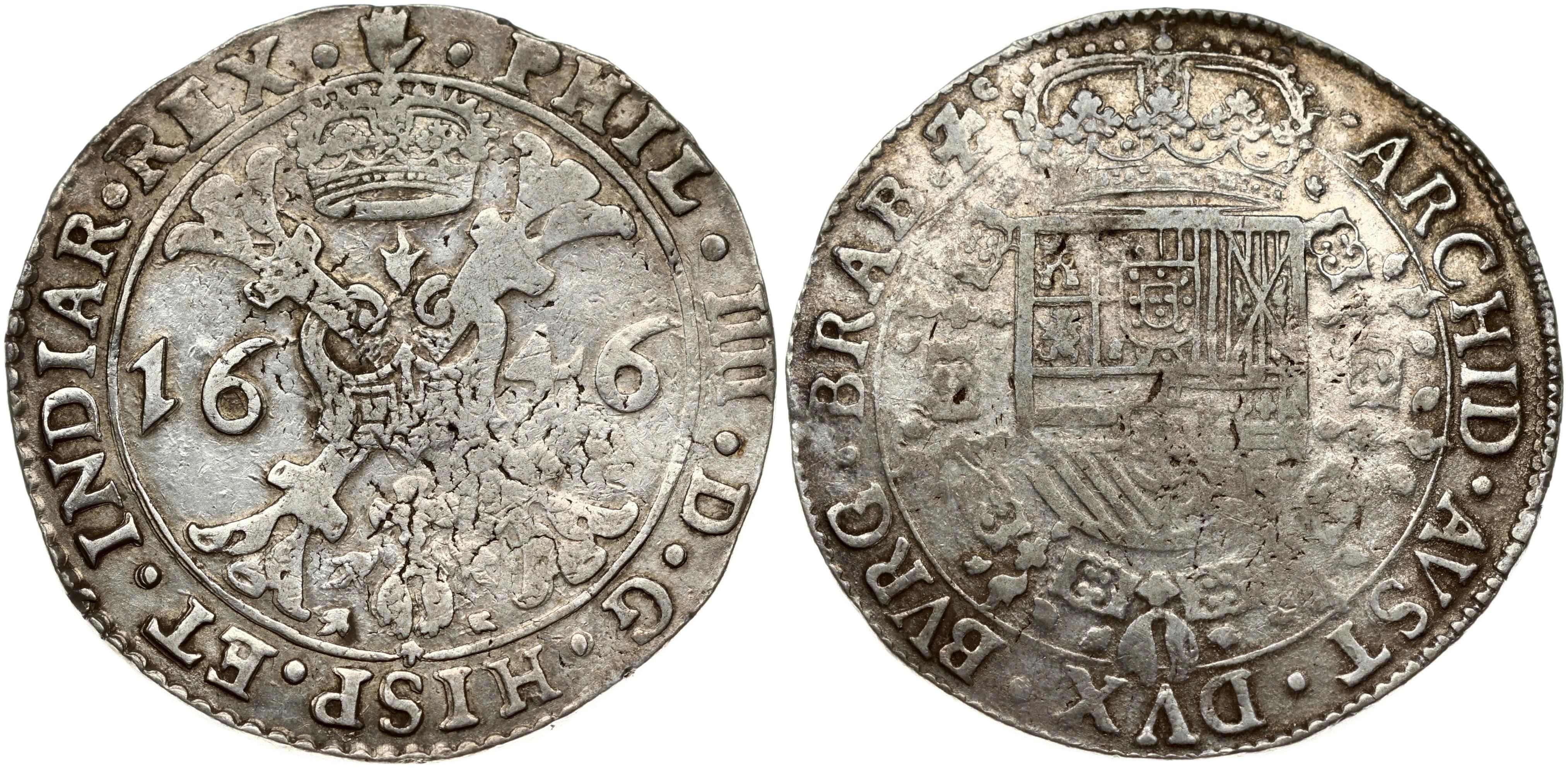 Spanish Netherlands BRABANT 1 Patagon 1646 Antwerp. Philip IV(1621-1665). Obverse...