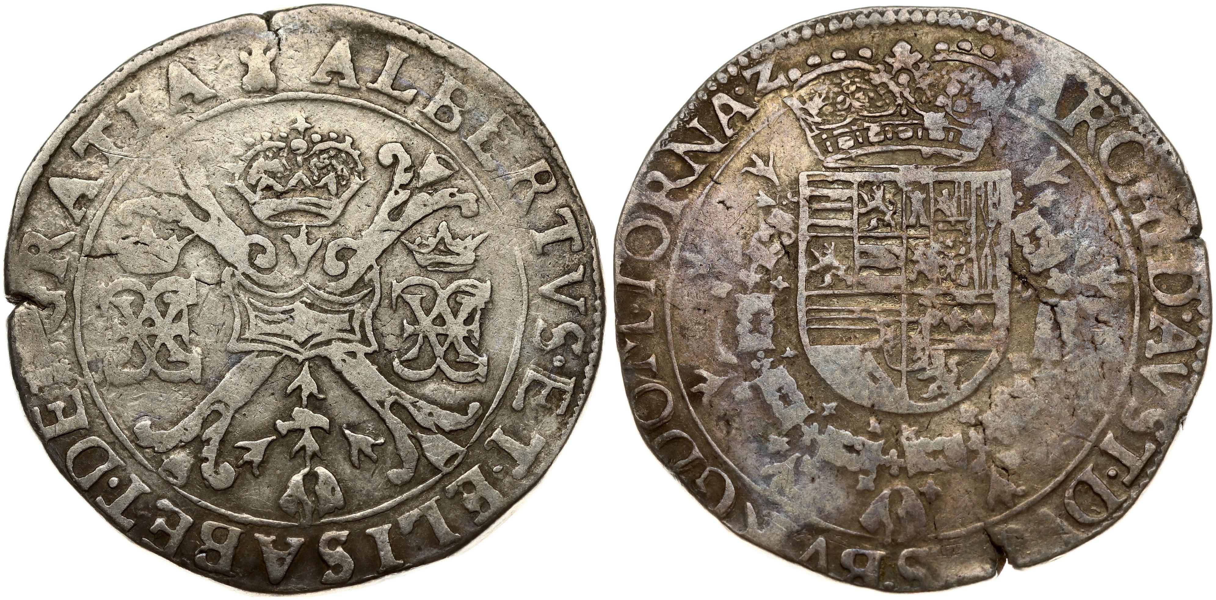 Spanish Netherlands TOURNAI 1 Patagon (1612-21). Albert & Isabella (1612-1621). Obverse: St. Andrew's cross...