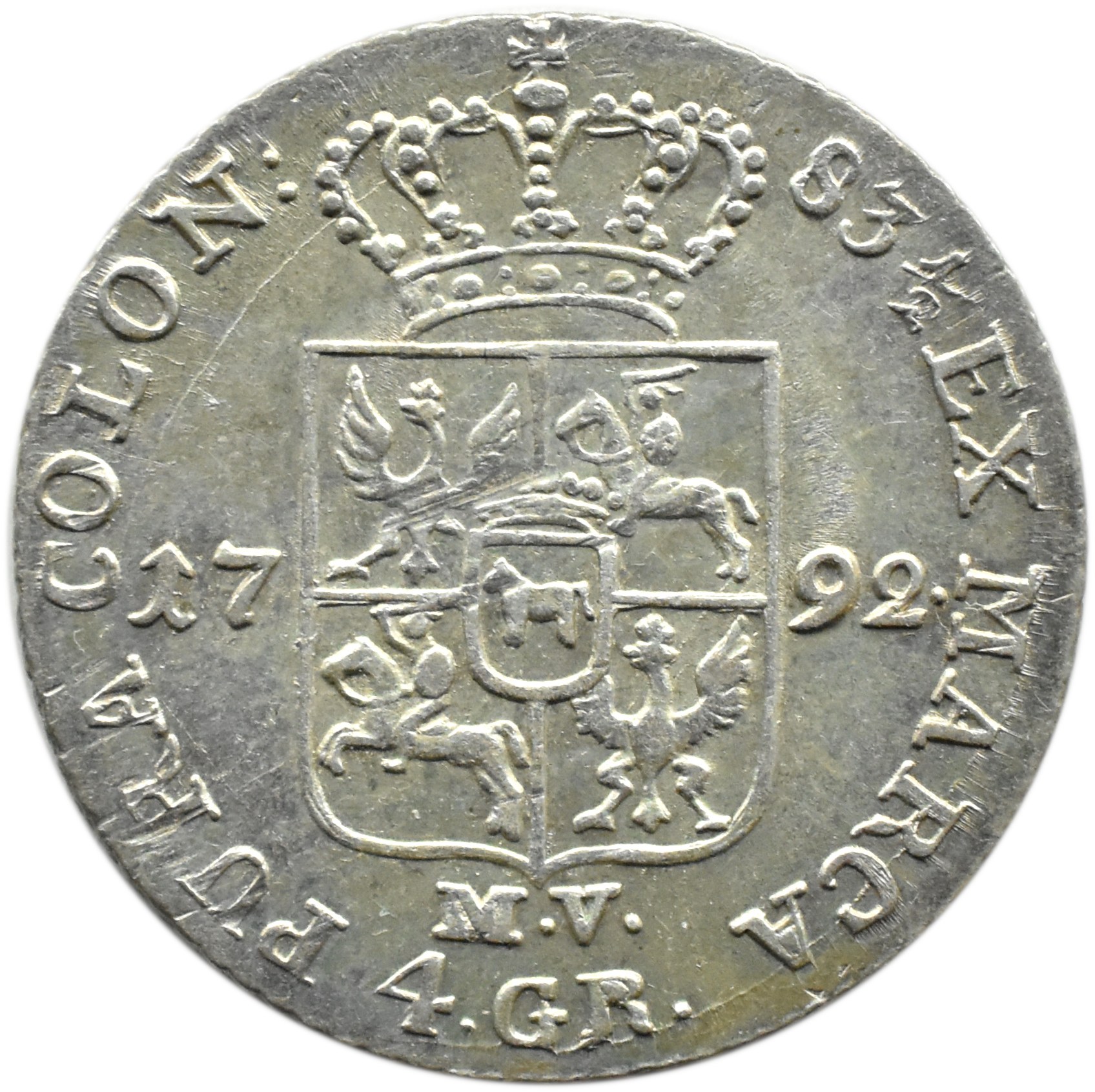 Stanisław August Poniatowski (1764-1795), 4 grosze srebrne (złotówka) 1792 M.V., mennica Warszawa