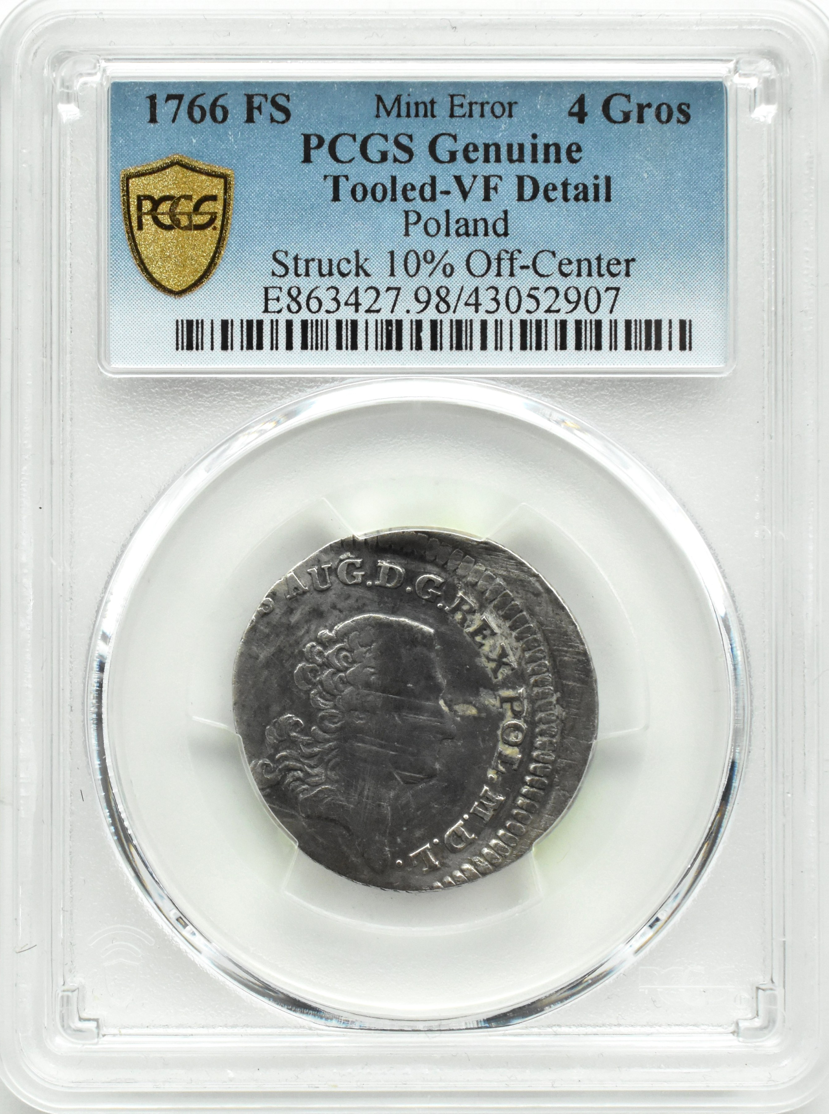 Stanisław A. Poniatowski, DESTRUKT - 4 grosze srebrne (złotówka) 1766 FS, Warszawa, PCGS VF DETAILS
