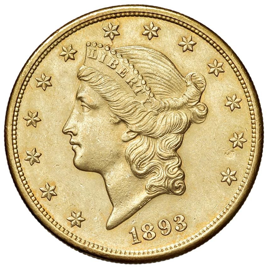 STATI UNITI 20 Dollari 1893 S - KM 74.3 AU (g 33,44)