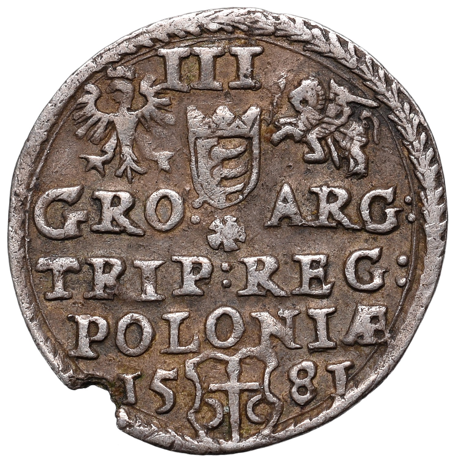 Trzeci rocznik bicia trojaków Batorego w mennicy olkuskiej.
