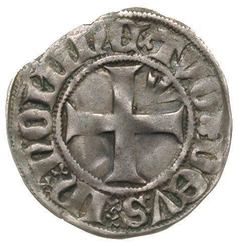 POMORZE, Strzałów, wit, Aw: Strzała i napis w otoku, Rw: Krzyż i w polu mała strzała, napis, Dbg 259, 1.23 g, nieregularny krążek