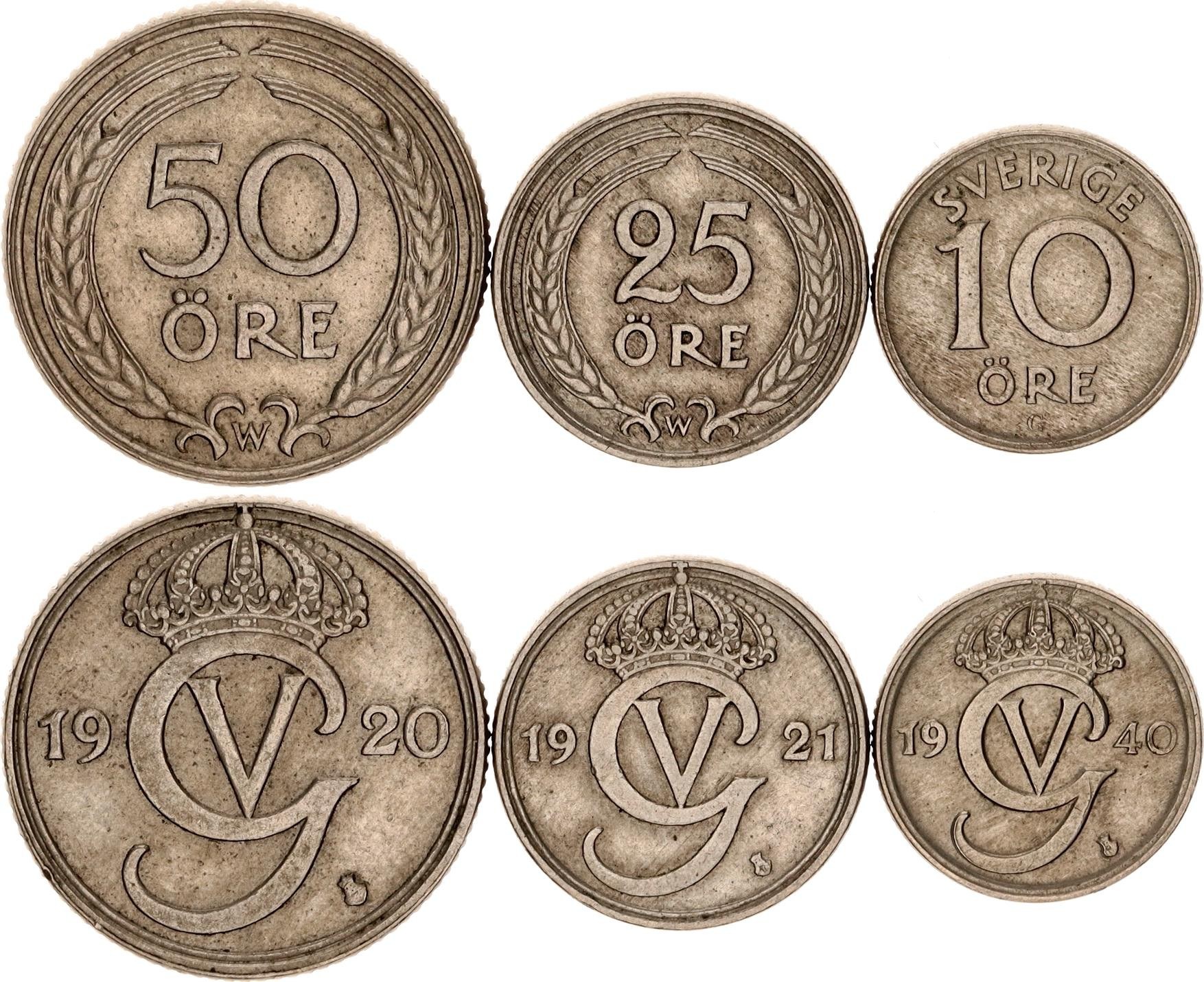 KM# 795-796-798; Nickel-Bronze; Gustaf V (1907-1950); XF-AUNC.