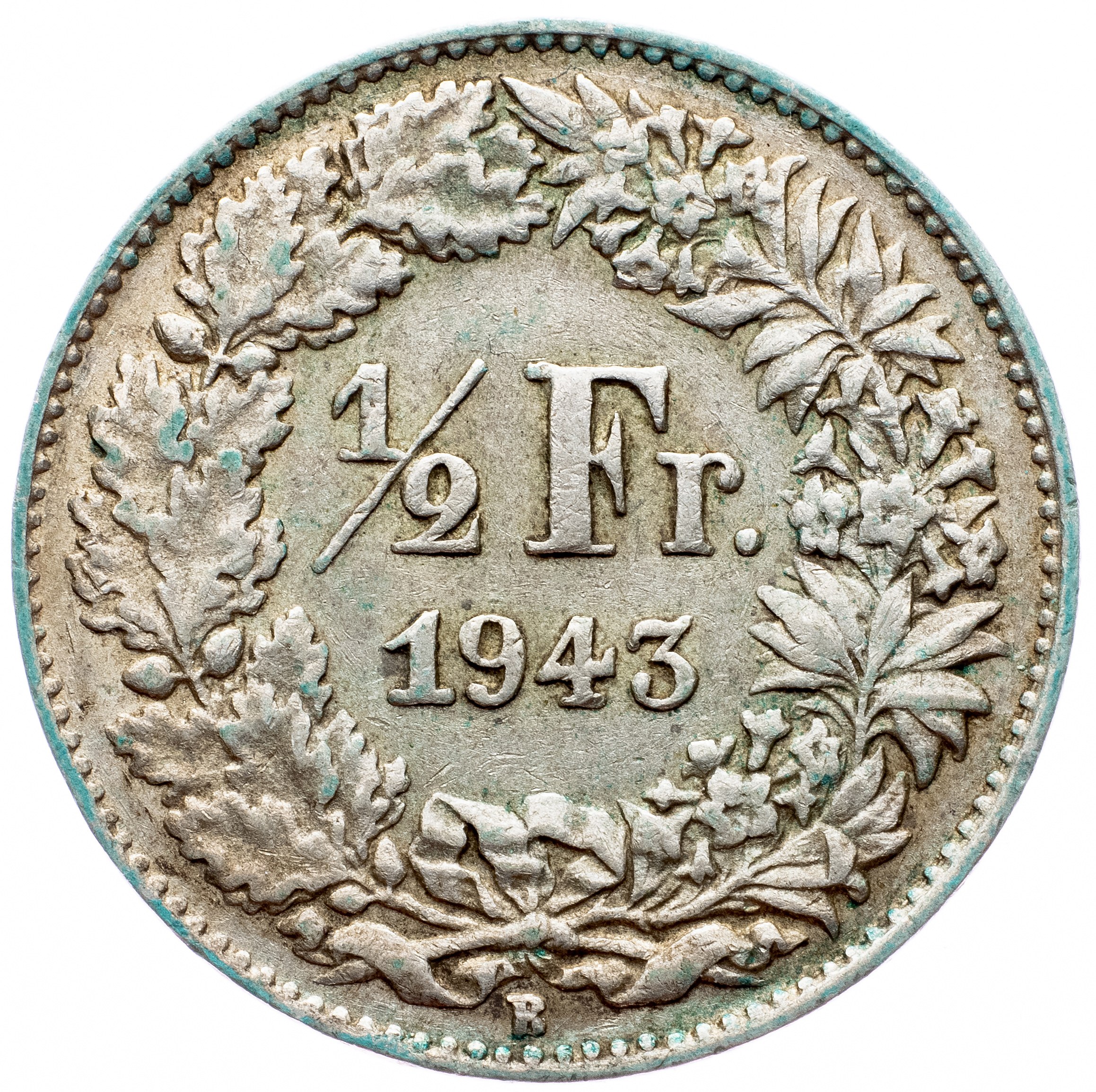 Switzerland, 1/2 Franc 1943, Bern, Ag, KM# 23; VF