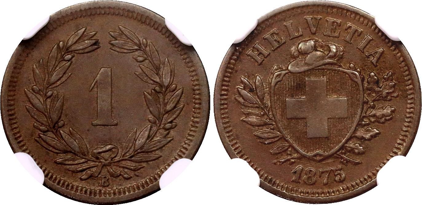 Switzerland 1 Rappen 1875 B NGC MS 62 BN