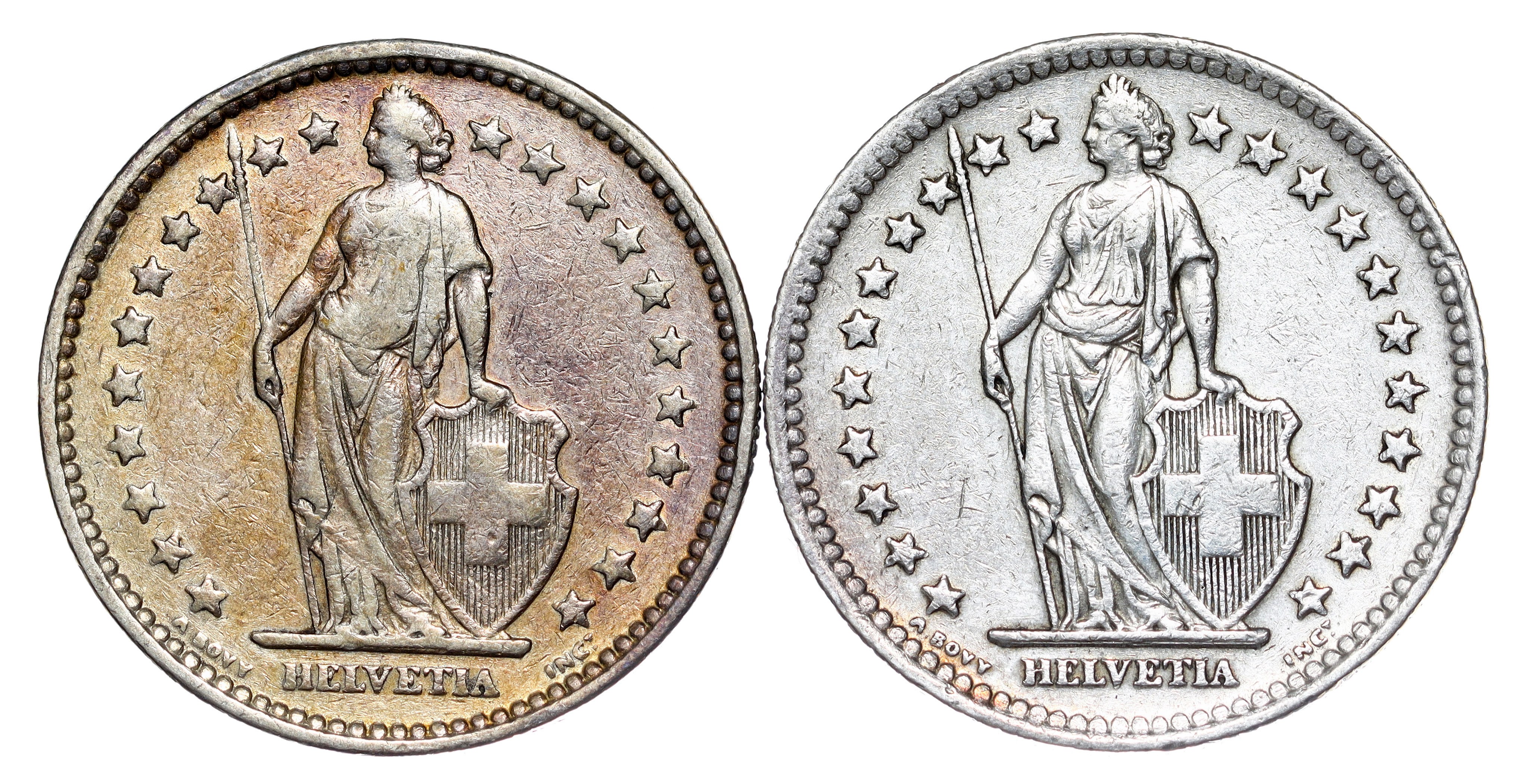 Switzerland – 2 Francs / Franken – 1921 , 1948