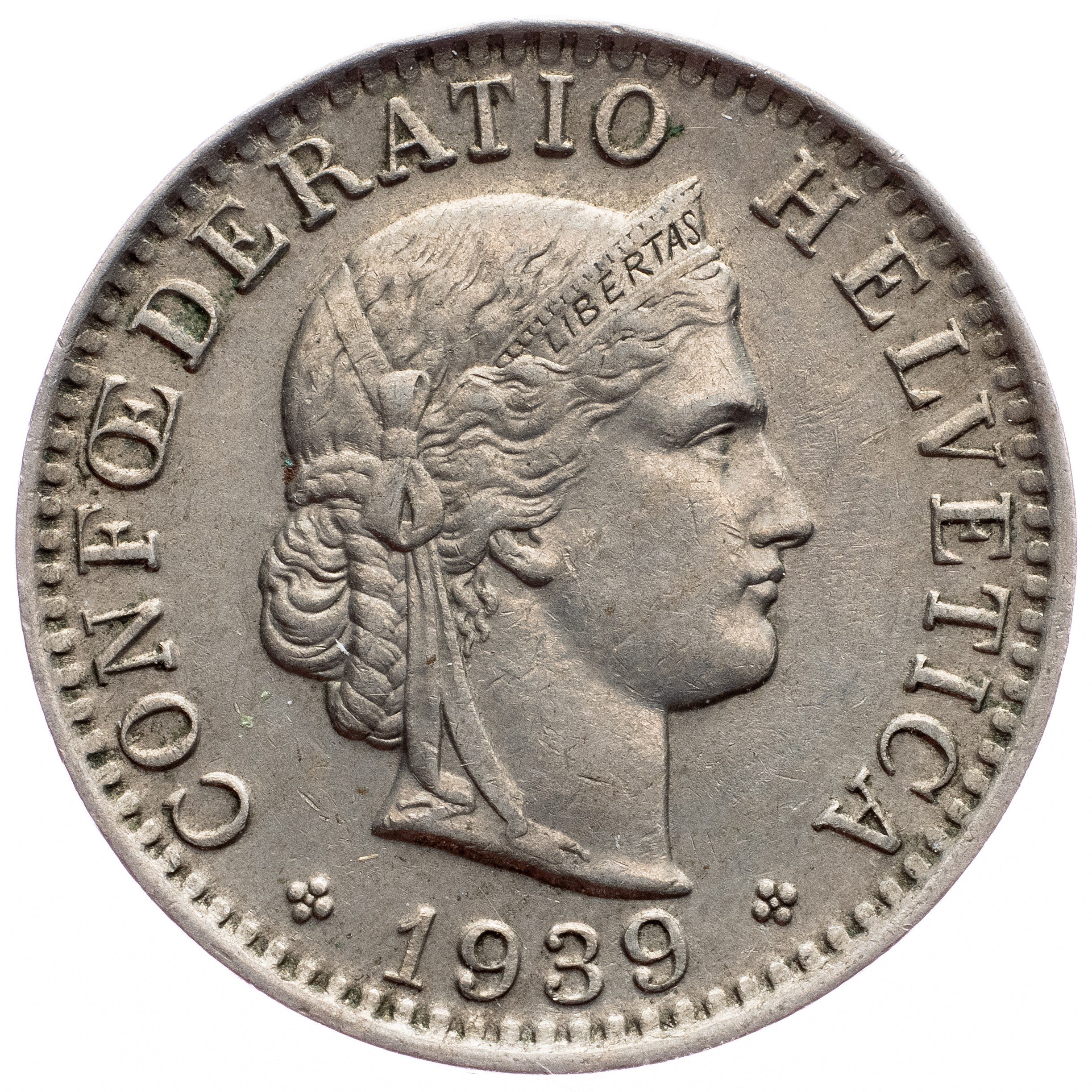 Switzerland, 20 Rappen 1939, Bern, KM# 29a; VF+