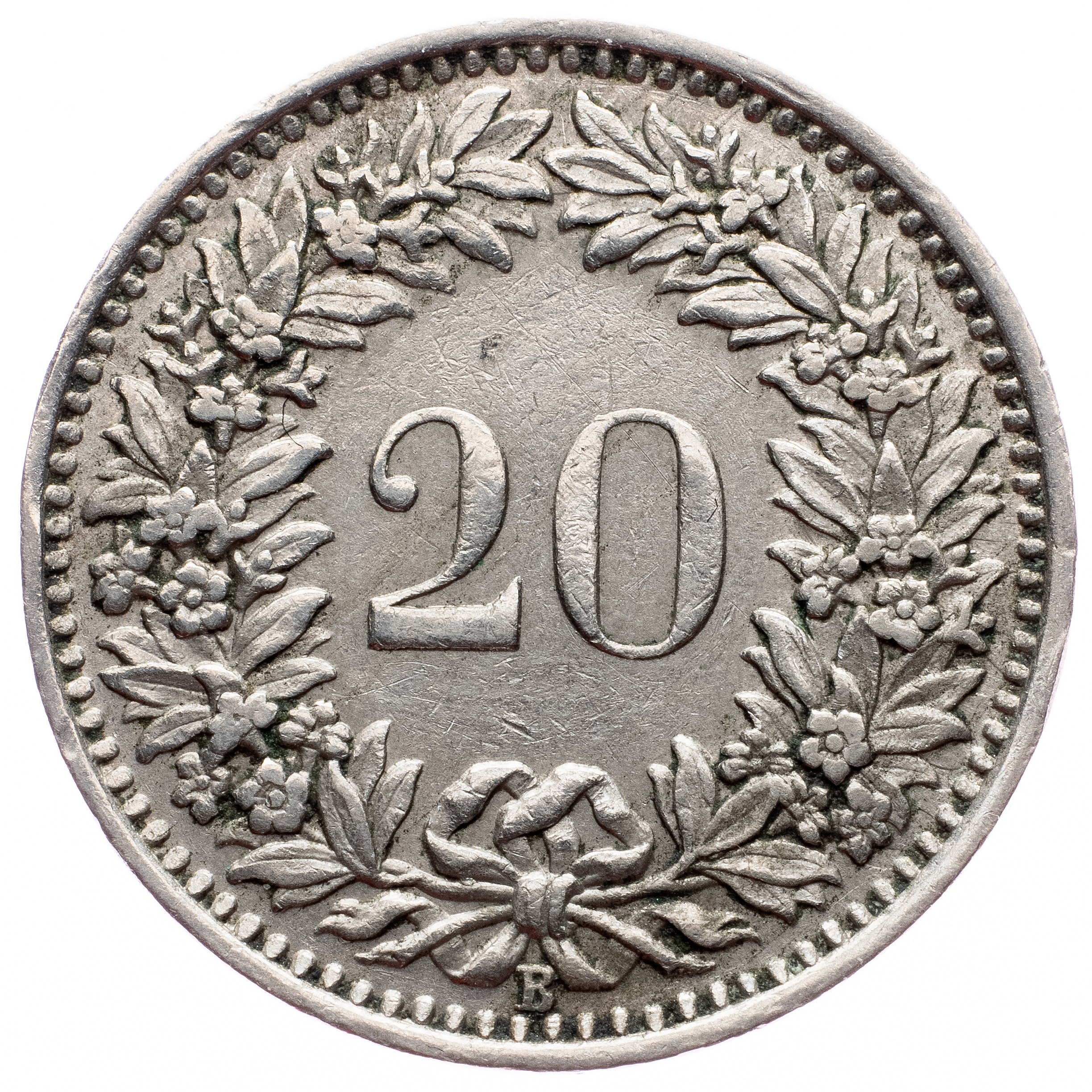 Switzerland, 20 Rappen 1939, Bern, KM# 29a; VF
