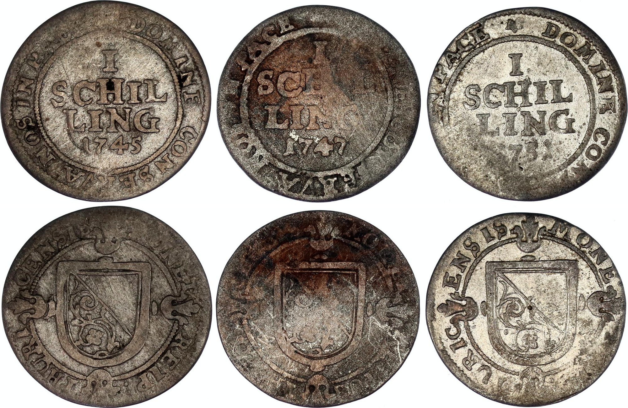 Switzerland Zurich 3 x 1 Schilling 1745 - 1751