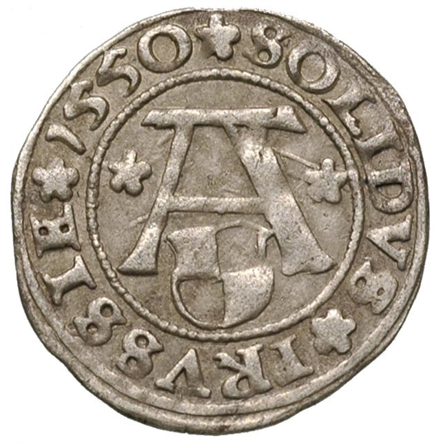 Albrecht Hohenzollern 1525-1568, szeląg 1550, Królewiec, Bahr. 1208, Neumann 48, bardzo ładny, patyna