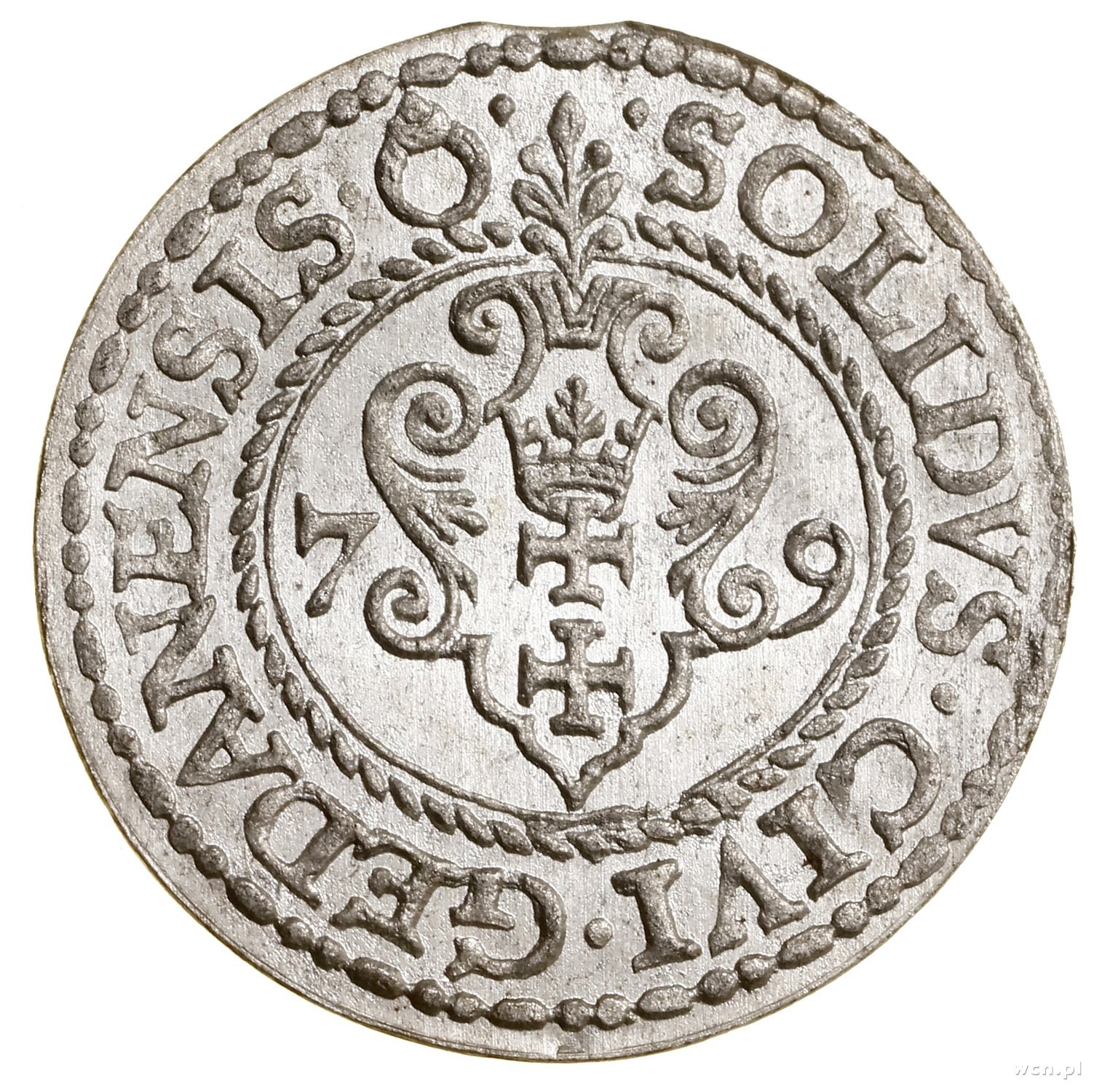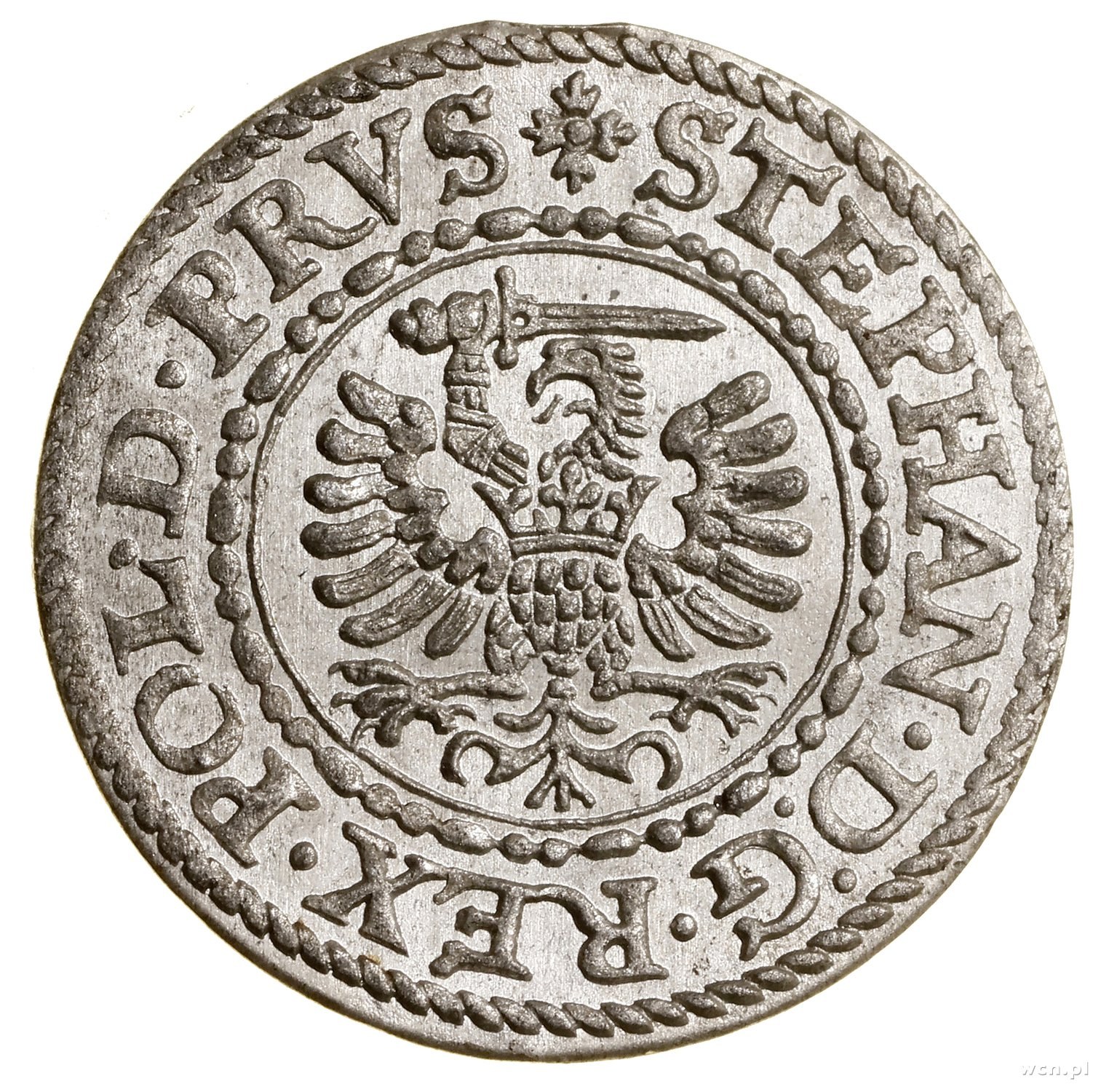 miasto Gdańsk, Szeląg, 1579, Gdańsk; CNG 128.I, Kop. 7426 (R), Kurp. (1576–1586) 373 (R), Parchimowicz Batory 169; wyśmienity, z pełnym blaskiem menniczym.
