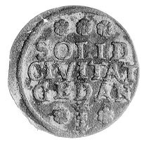 August II Mocny 1697-1733, szeląg 1715, Gdańsk, Aw: Monogram, Rw: Napis i herb Gdańska, Kop. 313 I-RRR-, H-Cz. 2649 R5, niezmiernie rzadka moneta.