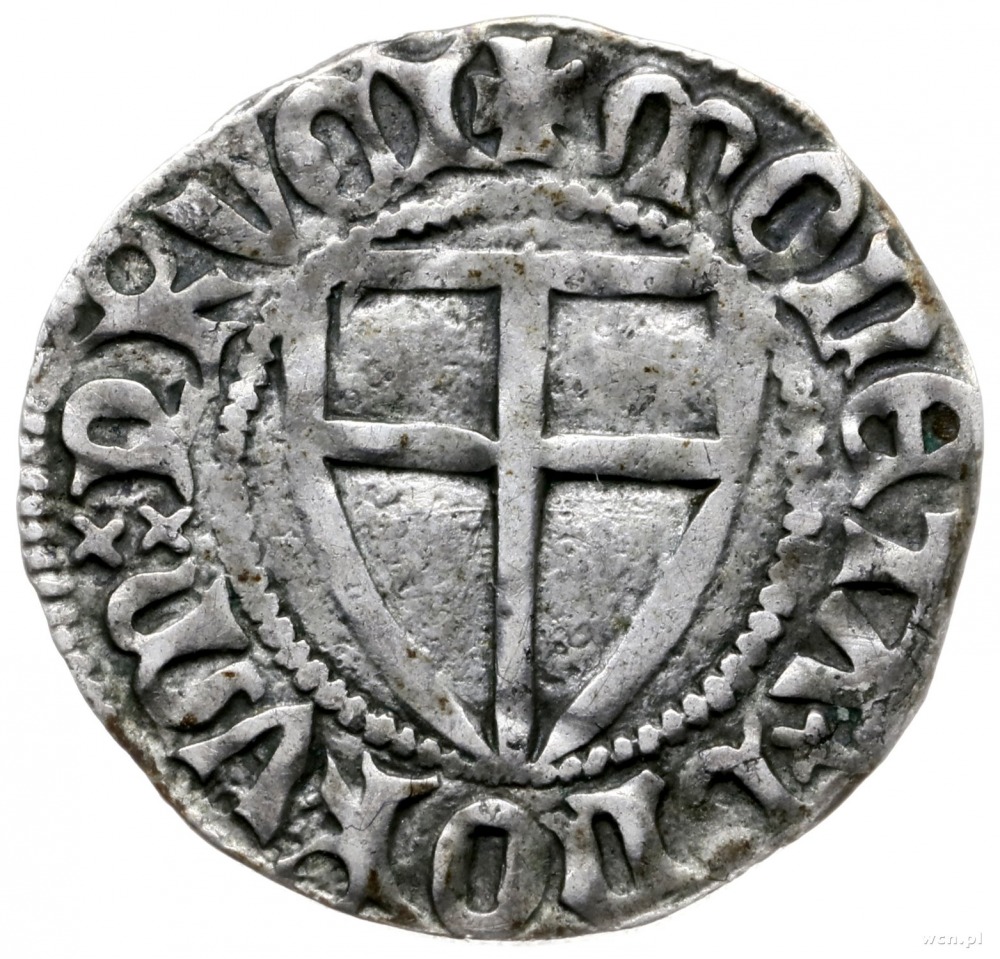 Konrad III von Jungingen 1393-1407, szeląg; MAGST’ CORADVS TERCI / MONETA DNORVM PRVCI; Neumann’87 7.a, Voss. $49/III/4, 302; srebro 1.72 g, patyna