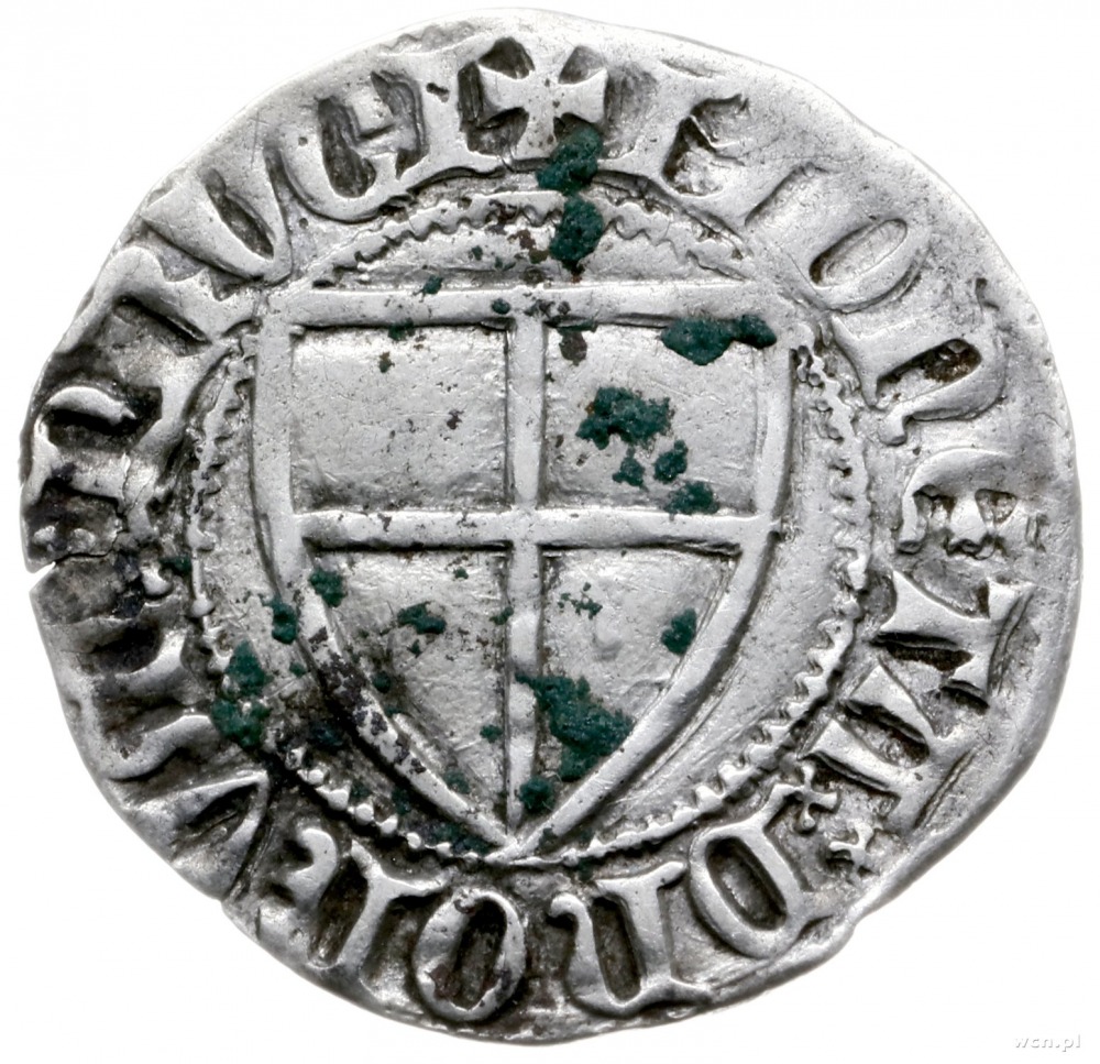 Winrych von Kniprode 1351-1382, szeląg; MAGST WVNRICG PRIM / MONETA DNORVM PRVCI; Neumann’87 4, Voss. §38, 133; srebro 1.52 g, pozostałości grynszpanu