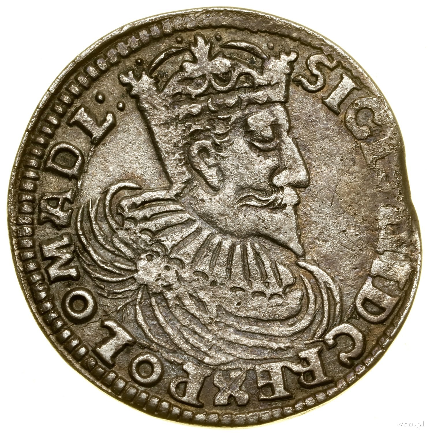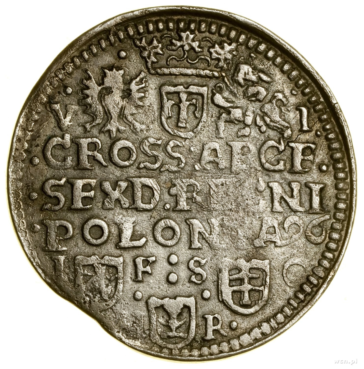 monety koronne, Szóstak, 1596, Bydgoszcz; Aw: Popiersie w płaszczu z kryzą, w koronie, w prawo, SIGIS III D G REX POLO MA D L: (litera A nabita na pierwotną literę D); Rw: Pod koroną herb Wazów rozdzielający herby Polski i Litwy, po bokach cyfry V - I, niżej w trzech wierszach •GROSS:ARGE• / •SEXD:REGNI / •POLONIA 96, niżej herb Lewart rozdzielający inicjały I - F (Jana Firleja z Dąbrowicy, podskarbiego wielkiego koronnego, starosty lubelskiego), herb Radwan rozdzielający inicjały S - C (Stanisława Cikowskiego z Wojsławic, podkomorzego krakowskiego, właściciela mennicy bydgoskiej), u dołu tarcza ze znakiem menniczym róża rozdzielającym inicjały H - R (Hermana Rudigera, zarządcy mennicy bydgoskiej); Gum. Bydg. 1246, H-Cz. 5740 i 10187 (R7) – ale inne odmiany interpunkcji i napisów, Kop. 1238 (R7) var. , Kopicki (ZIIIW) 897 (R6), Kurp. (1587–1632) 1429 (R6) – ale inna interpunkcja, Tyszkiewicz 100 mk; srebro, 4.36 g; ogromna rzadkość, odmiana interpunkcji nienotowana w katalogach, być może unikat - nienotowana odmiana połączenia stempli.