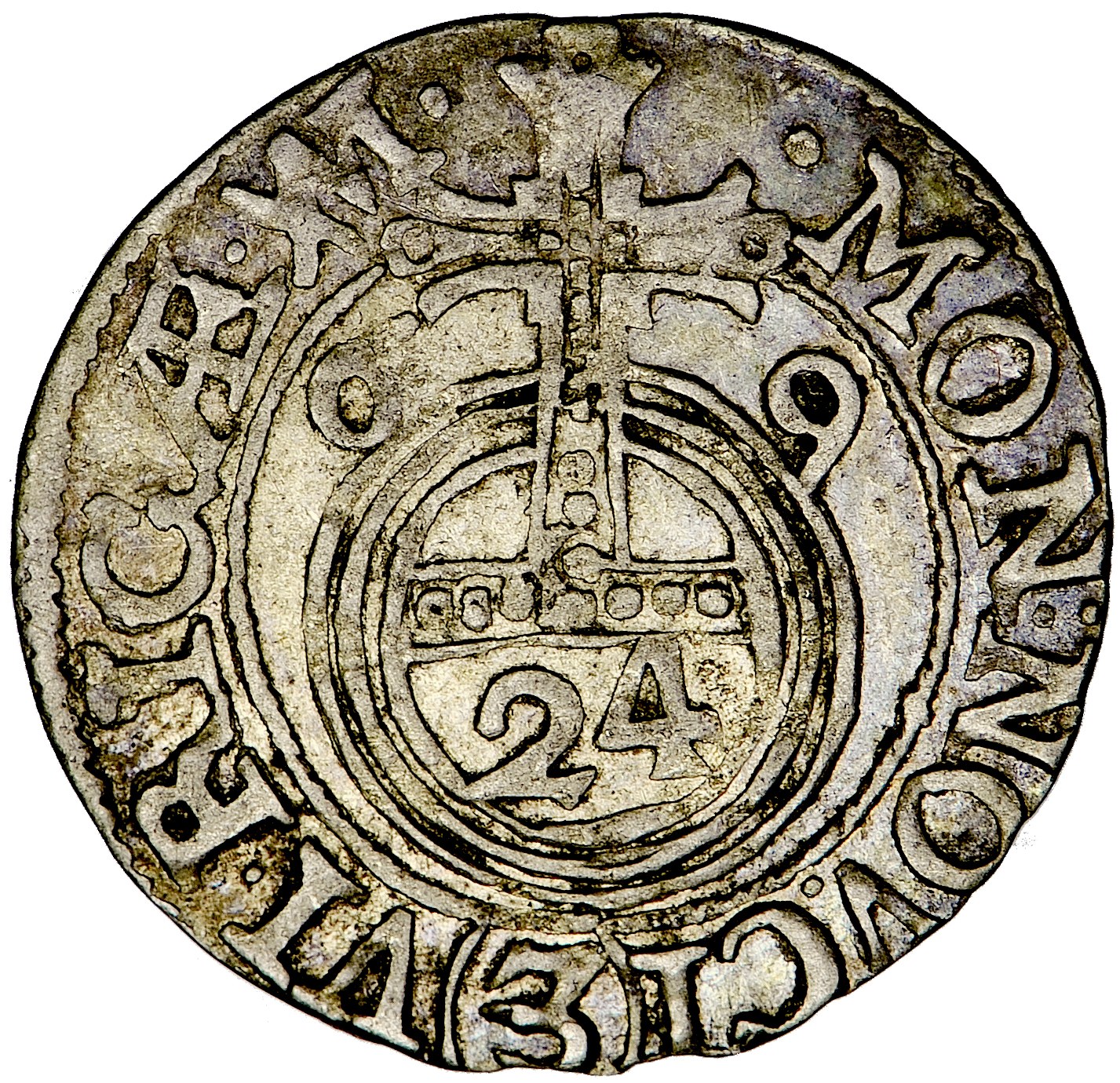 Szwecja, Karol XI, Ryga, półtorak (ferding) 1669, men. Ryga, Joachim Meinecke.