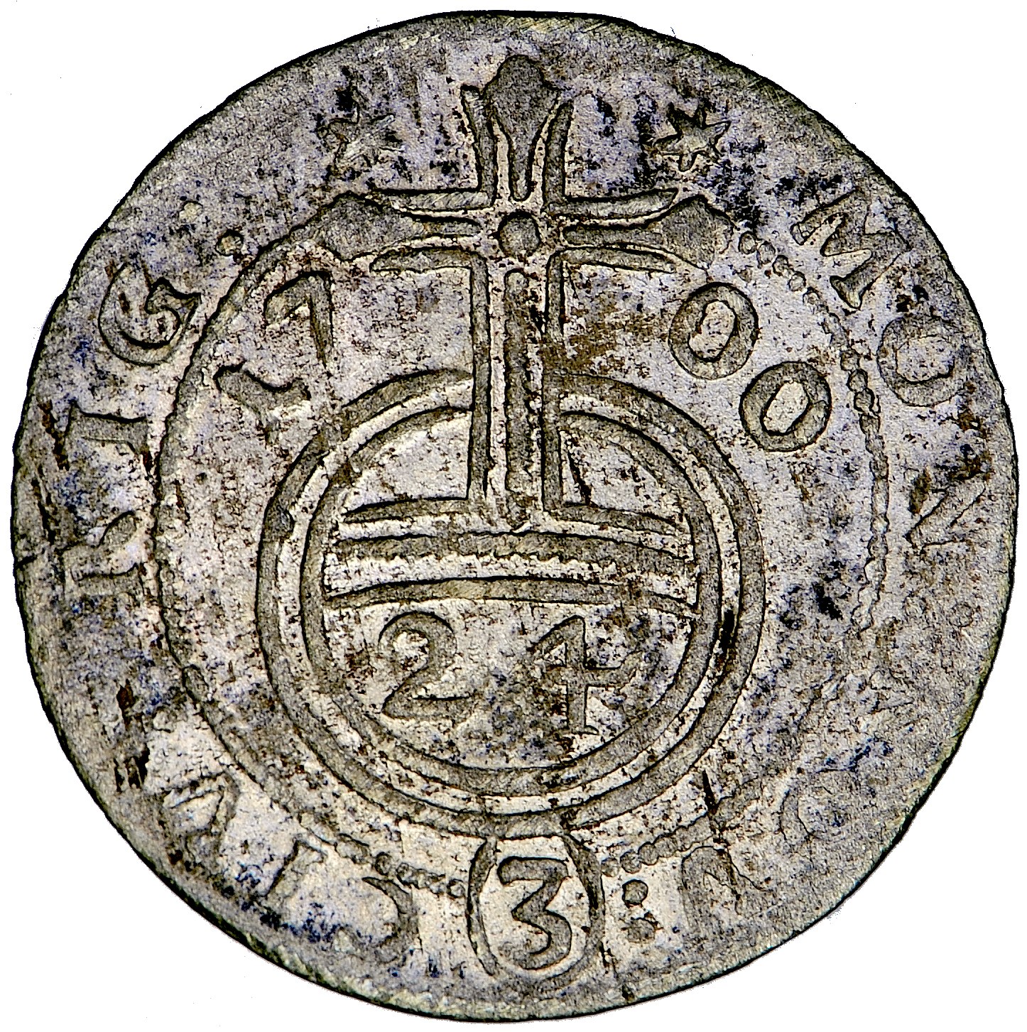 Stan II-, rzadszy z dwu roczników półtoraków ryskich tego króla. Okaz znakomicie zachowany.