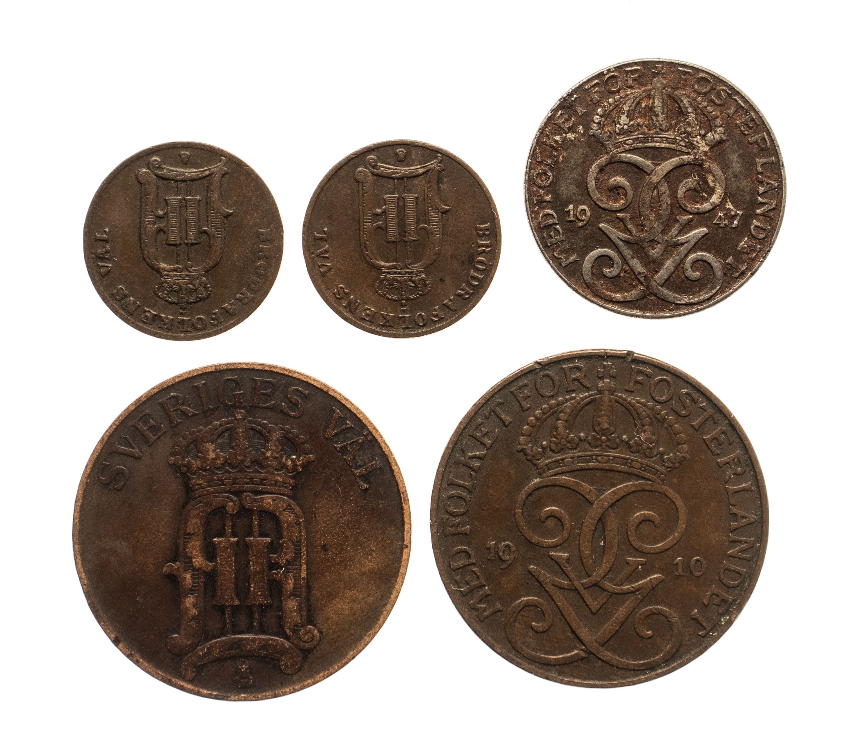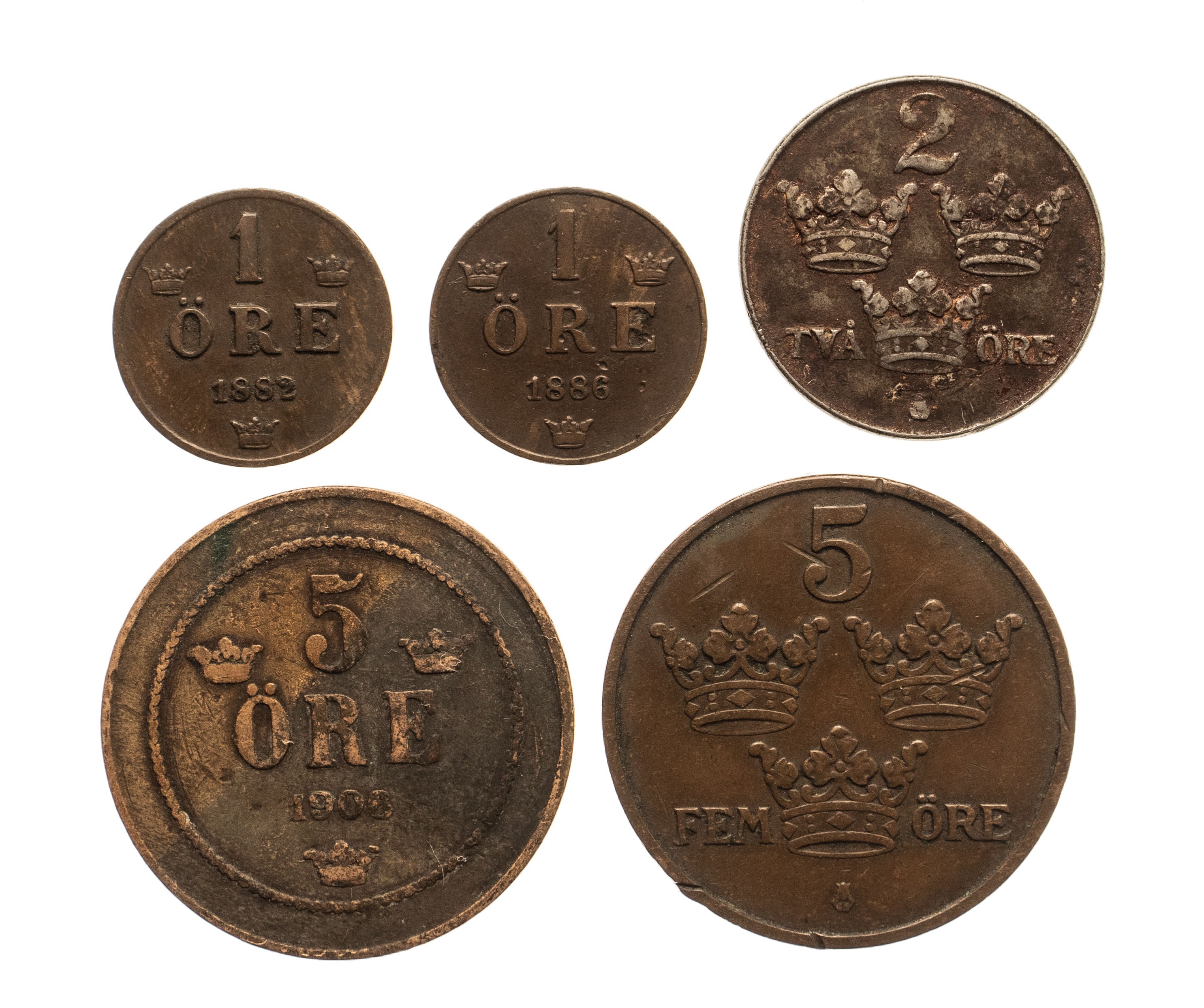 Szwecja, zestaw monet obiegowych z lat 1882-1947 (5 szt.).