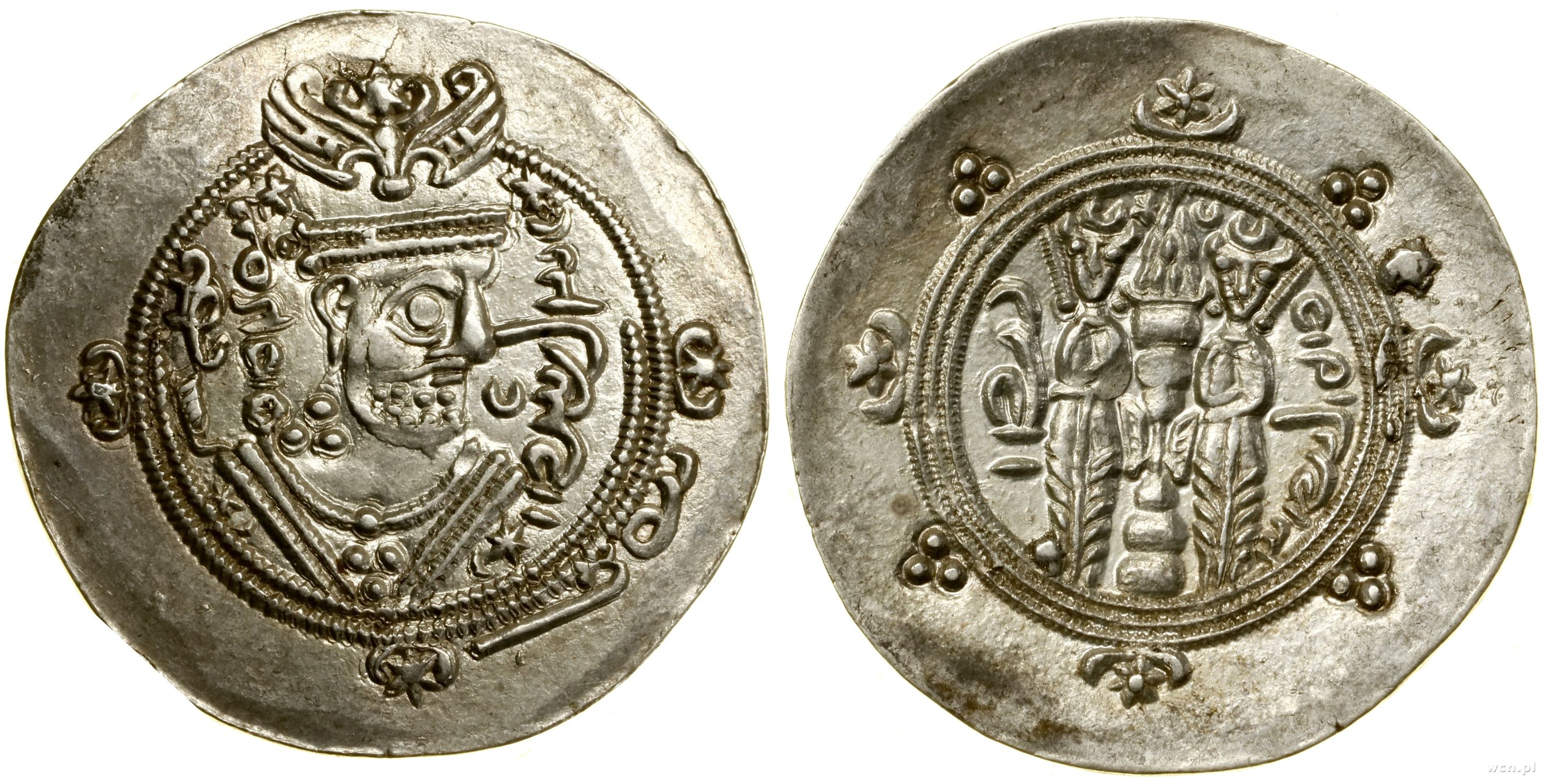 Aw: Popiersie króla w prawo; Rw: Dwaj strażnicy ognia stojący po bokach płonącego ołtarza