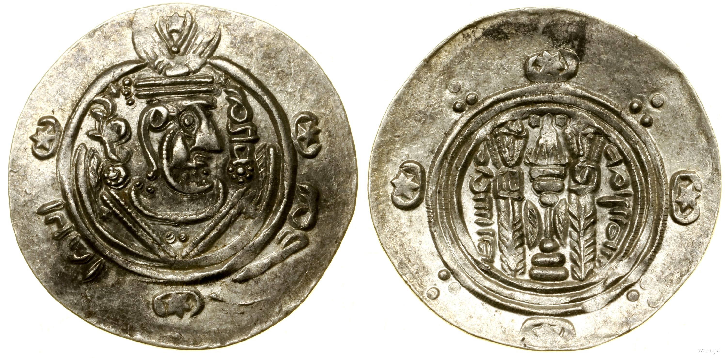 Aw: Popiersie władcy w prawo, Rw: Płonący ołtarz, po bokach dwaj strażnicy ognia