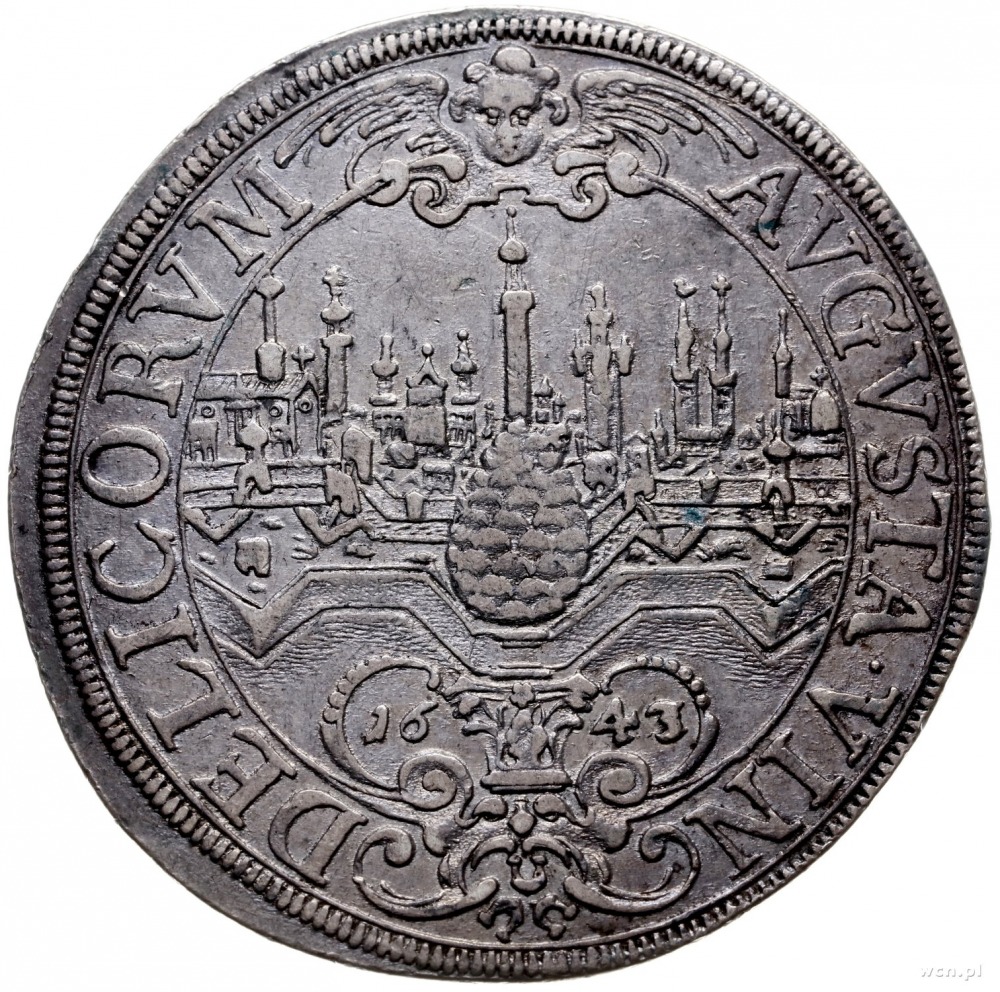 Augsburg - miasto, talar 1643; z popiersiem cesarza Ferdynanda III; Dav. 5039, Forster 298, F.-S. 328; srebro 28.74 g